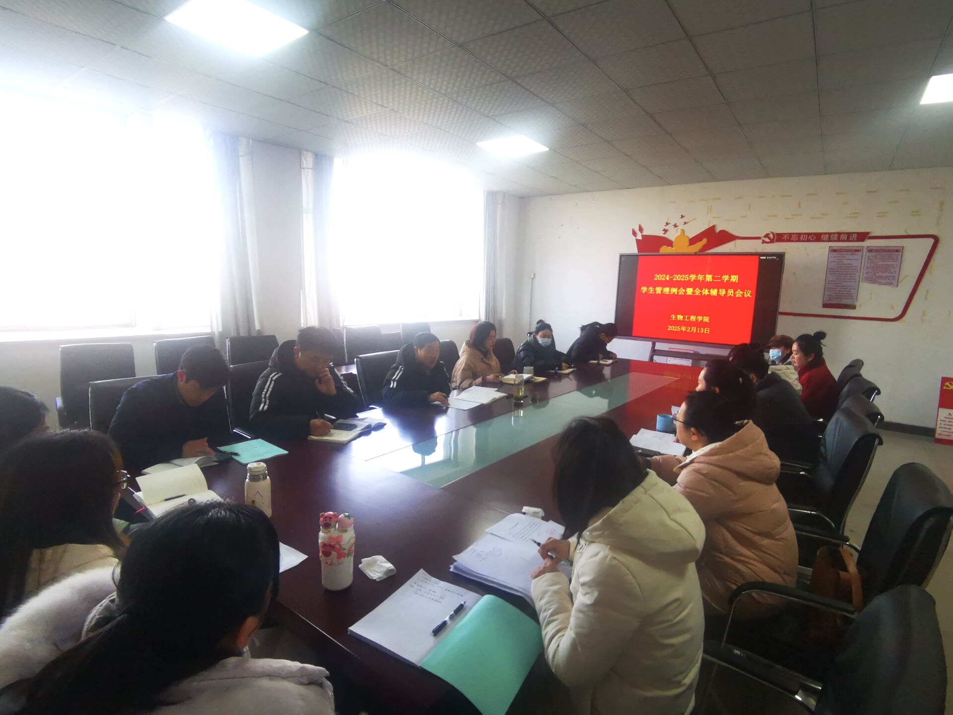 为确保新学期学生工作平稳有序开展,2月13日,91精品一区在党员活动室召开了学生管理例会暨全体辅导员会议。该院党总支副书记(主持工作)慈龙保、副书记周婷、全体学管老师及专兼职辅导员参加了此次会议。