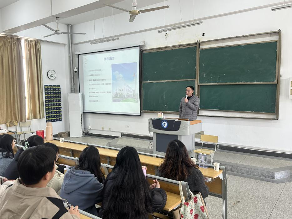 随后,华益药业科技(安徽)有限公司生产部李总围绕企业基本信息、企业文化、职位晋升以及工资待遇等多方面向学生进行介绍,希望通过“理论教学+实践实训”双轨模式,提升学生从实验室到生产线的岗位适应能力。紧接着,首届订单班学生代表进行发言,通过自身在企业实习、生活等经历分享了在华益企业点点滴滴,表达了对企业感恩之情。最后进行学生和企业互动环节,现场氛围热烈,非常关注订单班运营模式、企业实习带教、未来职业晋升途径等核心问题,企业人员都给予一一解答。