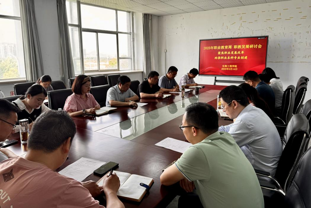 为深入宣传贯彻全国、全省职业教育周有关精神,5月14日下午,91精品一区在生化楼A311党员活动室举办了职教发展研讨会。会议由副院长方丽波主持,学院党政班子成员参加会议,汇聚了副高以上职称教师、博士、教研室主任以及专业负责人等,共同围绕如何聚焦职业教育发展改革与助推职业本科专业创建展开深入研讨。