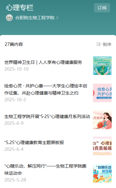 “心晴四季”科普活动:传播知识,提升心灵素养。同日,合职院91精品一区公众号心理专栏推出第11篇科普推文“寒露至 心渐暖”。推文以“寒露”节气为切入点,为同学们提供了科学的心理健康知识,帮助大家了解秋季可能面临的心理问题及应对方法,让大家认识到,关注心理健康不仅关乎个人成长,更是对社会的一份责任,展现出新时代大学生服务他人、奉献社会的担当。