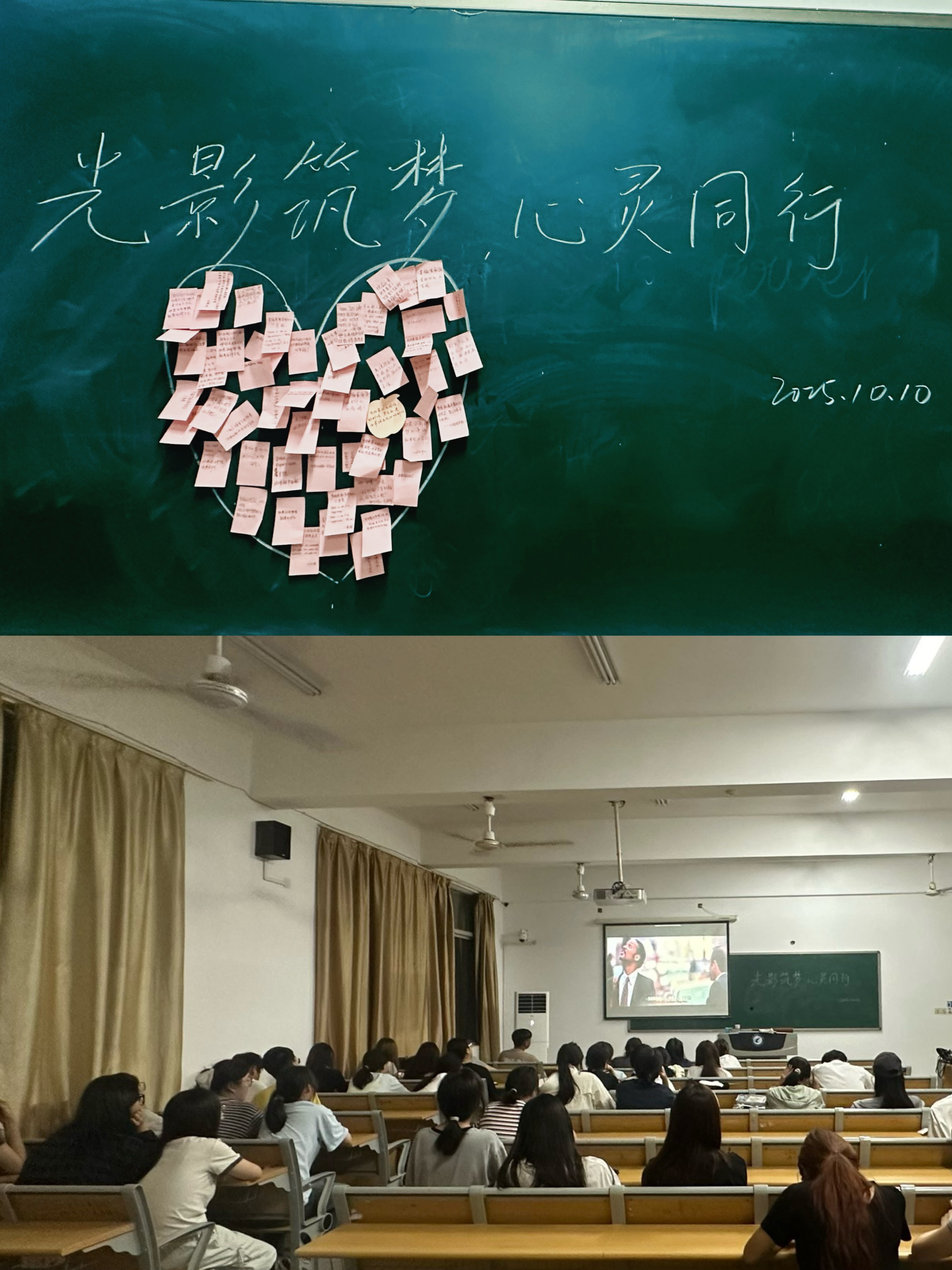 “心随影动”活动:汲取力量,树立正确心态。10 月 10 日当天,该辅导站组织 60 余名同学观看电影《当幸福来敲门》。近两个小时的观影过程中,同学们全神贯注,被影片跌宕起伏的情节和主人公面对困境不屈不挠的精神深深吸引。观影结束后,大家在留言区纷纷写下感言,表达要以积极心态直面生活困境的决心。此次观影活动,让同学们在光影中探寻幸福的真谛,汲取心灵成长的力量,激励他们在面对挫折时保持坚韧,以乐观态度迎接挑战。