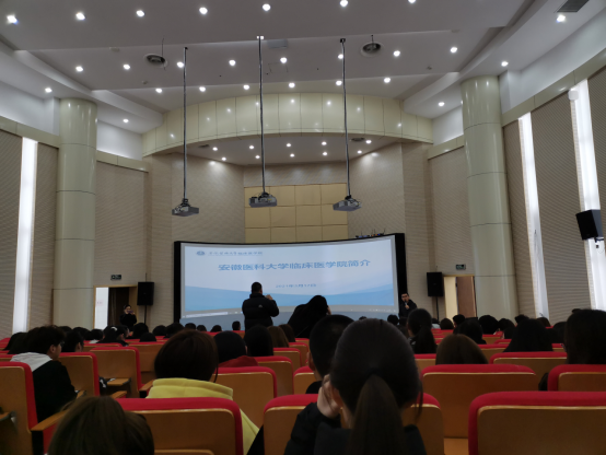 会议开始,安徽医科大学临床医学院王翔飞老师对安徽医科大学临床医学院做了全面的介绍并列举了学历提升的种种优势,强调专升本对于专科学生的重要性。随后,王翔飞老师解读了2021年“专升本”最新政策,并且对招生计划、招生对象、报考时间、考试科目、填报志愿以及专升本的意义等内容进行了认真讲解,对与会同学提出了一些积极合理的建议。最后王翔飞老师又提到了有关学校各种奖项及获奖方法,鼓励同学们积极参与学校活动。