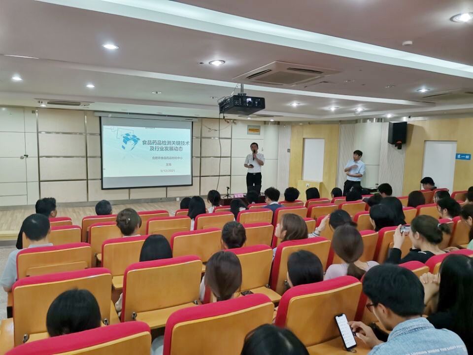 报告从国家食品药品质量标准“四个最严”导入,首先强调了食品药品质量的重要性;接着,王玮主任主要从食品药品检测内容、现代分析技术运用和行业热点分析等几个方面,结合专业典型案例、工作生活实际、行业前沿科学进行了详细的介绍;最后,在经验交流中,王玮指出,食品药品检测前处理发展迅速、国产仪器发展势头强劲但仍任重道远,并说到:“无论检测仪器多高端,没有扎实的分析化学基础技术,检测还是做不好!”强调了化学分析基础在食品药品质量检测中的至关重要性。本次学术讲座是在药品食品分析检测示范实验实训中心(省级质量工程项目2020sxzx45)平台上开展的一次学术交流与专业培训,校中心成员积极参加。报告结束后,教师和学生纷纷发言交流,报告会现场气氛热烈。