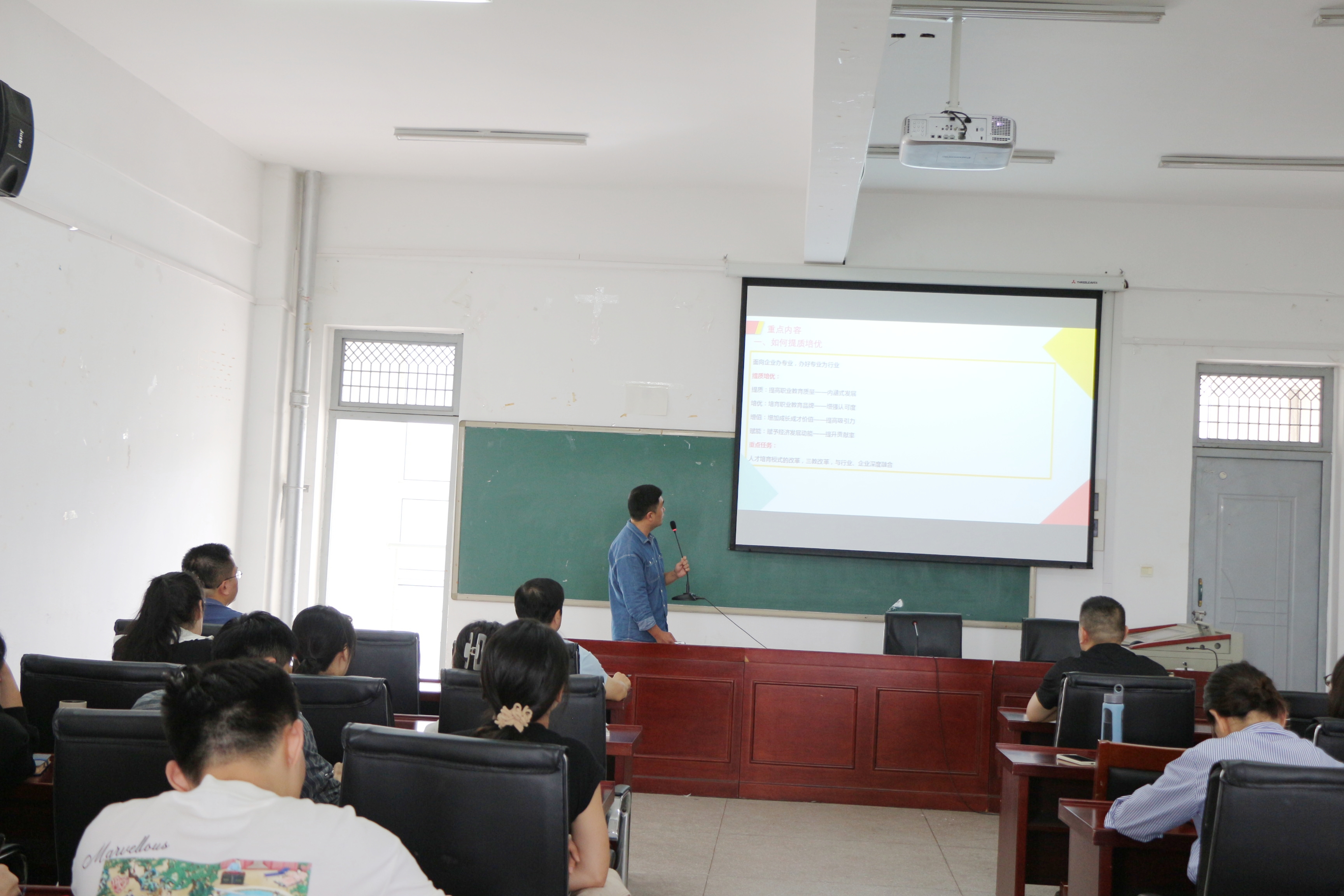 党总支副书记(主持工作)慈龙保做总结发言,提出三点要求,一要充分认识实践培训的重要性,二要提高专业结合度,三要加强运用,将自身知识技能更好融入教学实践中,厚德重教,为社会培养更多人才。