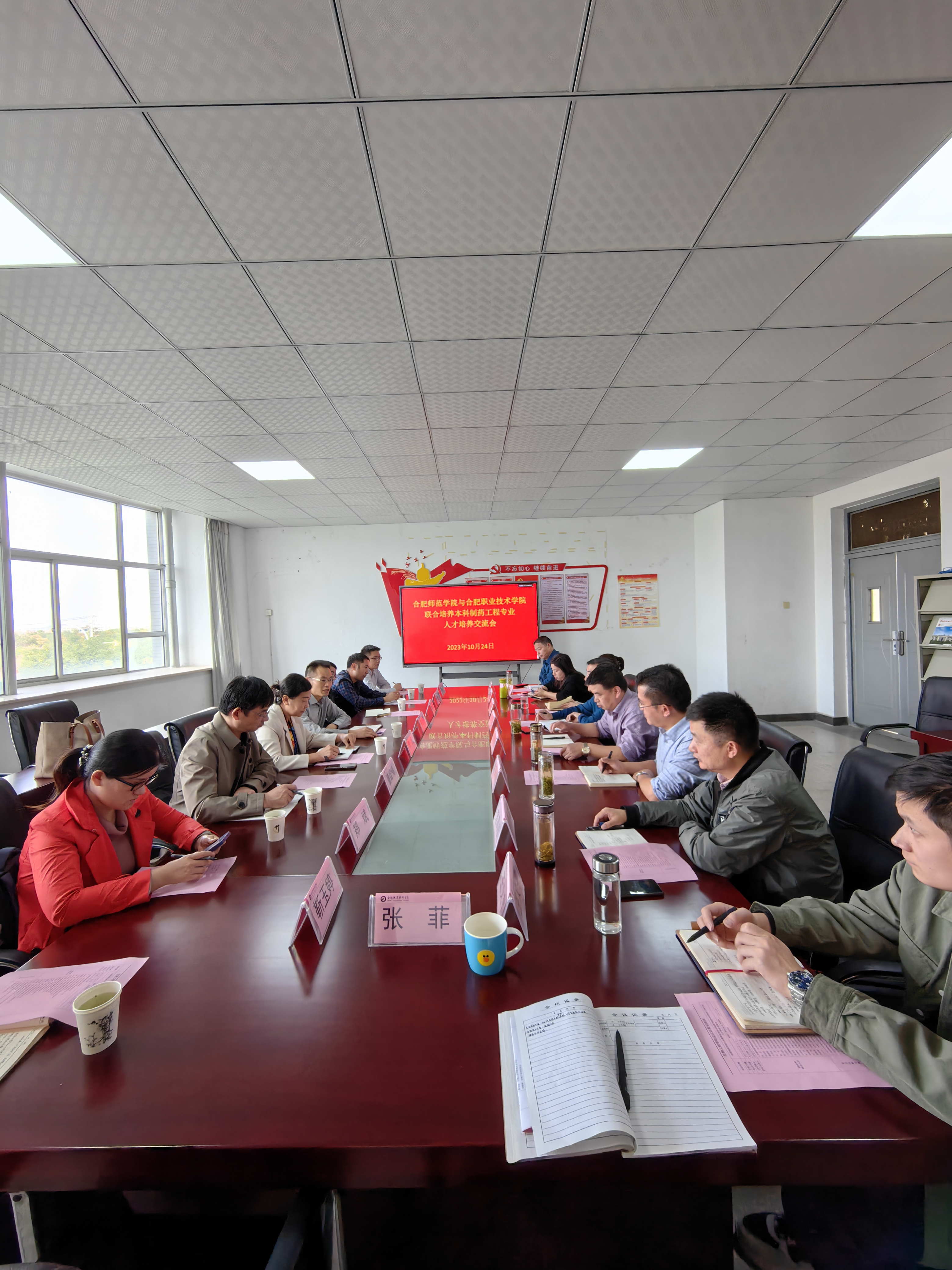 10月24日下午,合肥师范学院化学与制药工程学院党委书记李红、院长朱金苗等一行8人来访合肥职业技术学院91精品一区,旨在加强两个学院之间的交流和合作。此次来访的一个重要环节是合肥师范学院与合肥职业技术学院联合培养本科制药工程专业人才培养的交流会。会议由合肥职业技术学院91精品一区党总支书记慈龙保主持,主要分为两个阶段。
