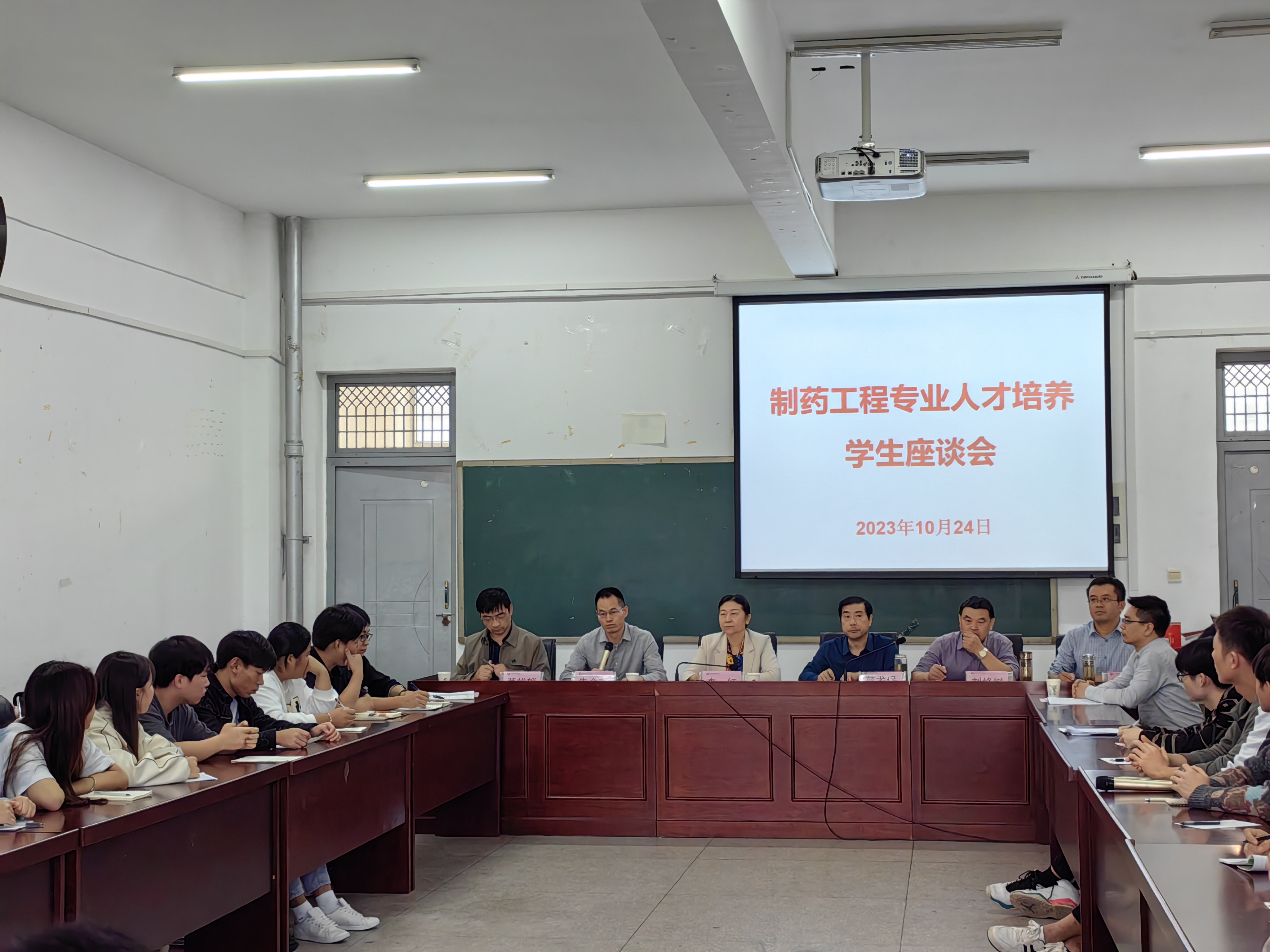 第二阶段是专业学生座谈会。慈龙保主持会议,合肥职业技术学院22级制药工程专业全体学生参加了座谈会。学生们就一些关心的问题积极发言,包括党员发展、论文双选、实习、升学和就业等方面。