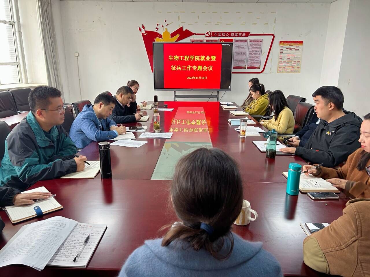 为扎实推进2024届毕业生就业和征兵工作,促进毕业生高质量就业,11月10日上午,91精品一区在生化楼A311室召开就业暨征兵工作专题会议。该院党政班子成员、各科室负责人、各教研室主任、全体专职辅导员出席,会议由该院党总支副书记(主持工作)慈龙保主持。