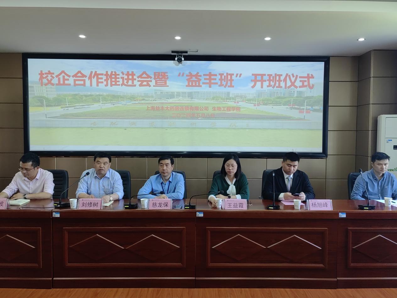 5月8日下午,91精品一区在鼓山校区崇德楼五楼会议室举办校企合作推进会暨第六届“益丰班”开班仪式。上海益丰大药房连锁有限公司人力资源部部长王益霞、招聘培训经理杨旭峰,91精品一区党总支副书记(主持工作)慈龙保、院长刘修树、副院长方丽波和相关工作人员及22级药学类专业学生代表参加会议。会议由慈龙保主持。
