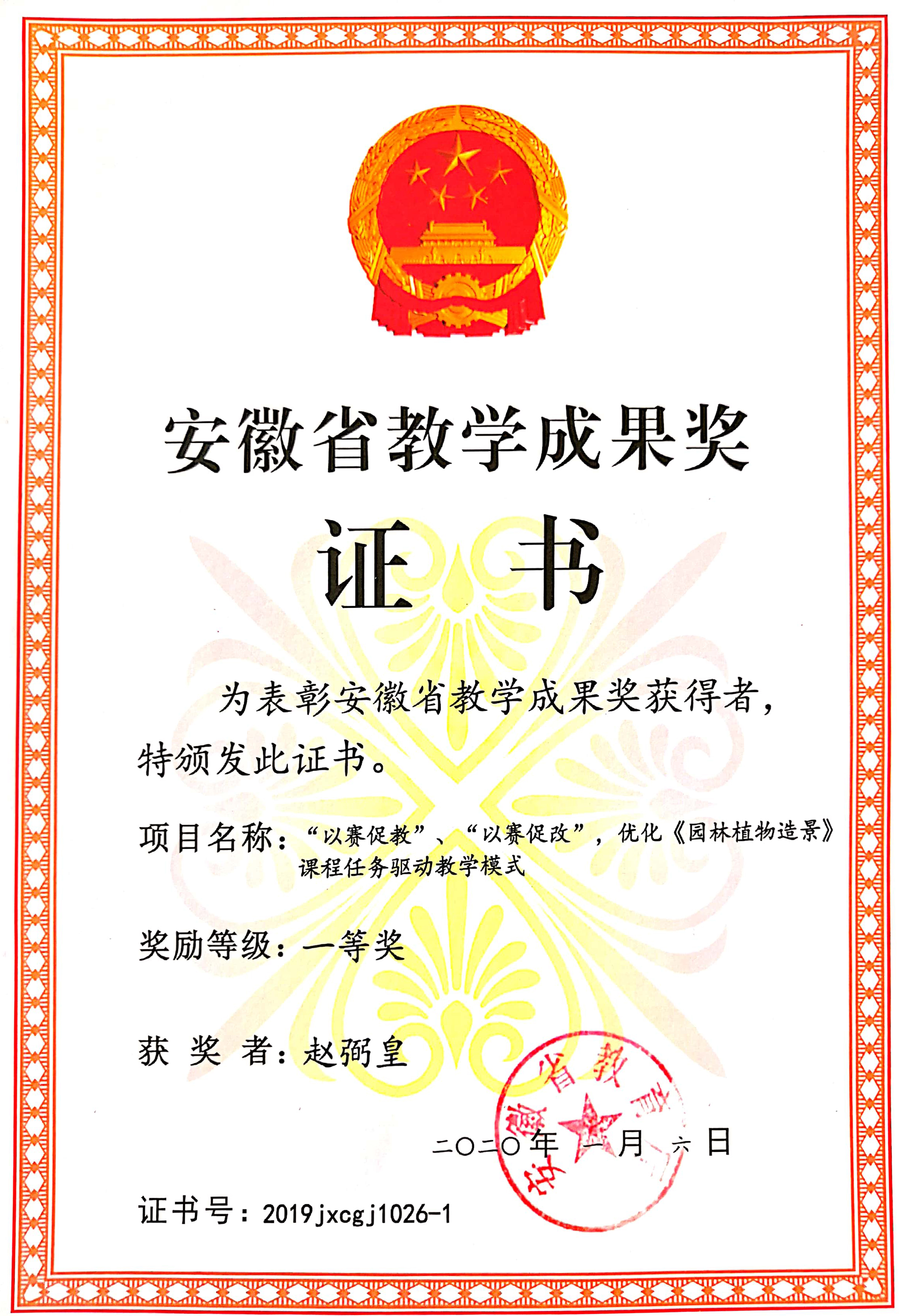【办学成果】通过校企联合培养,教师与学生的专业能力和职业素养不断增强,专业教学团队于2018年获得“全国职业院校职业技能大赛教师教学能力比赛”一等奖,2019年获“安徽省教学能力比赛”二等奖。2020年,获得“安徽省教学成果奖”一等奖,4名教师获“安徽省教坛新秀”、1名教师获“安徽省优秀教师”等荣誉称号。近三年,学生参赛队共计在安徽省职业技能大赛“园林景观设计与施工”项目获得二等奖1项,三等奖4项;“花艺”项目获得二等奖1项,三等奖3项。