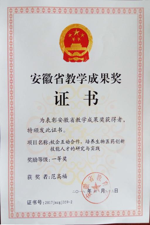 安徽省教学成果一等奖(范高福)