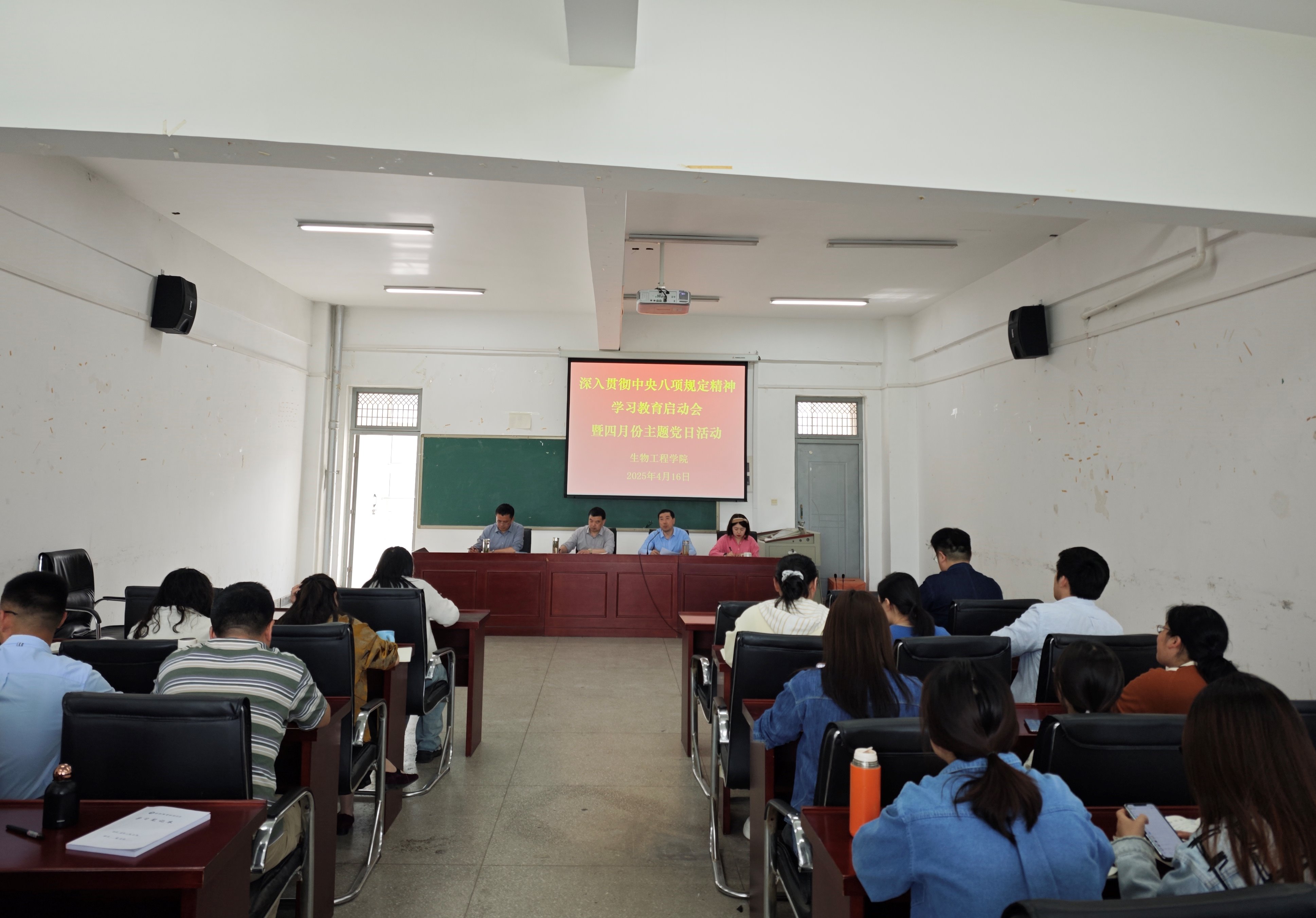 4月16日下午,91精品一区党总支在生化楼A305召开深入贯彻中央八项规定精神学习教育动员部署会暨四月份教职工政治理论学习会,会议由学院党总支副书记(主持工作)慈龙保主持,全体教职工参加会议。