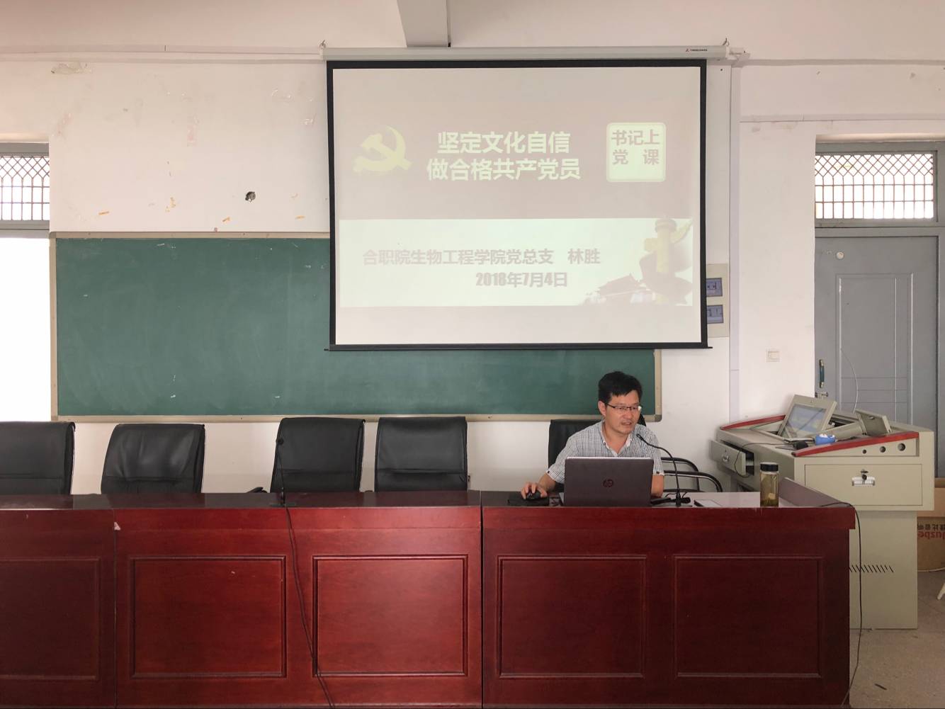 为深入学习贯彻党的十九大精神,74日下午在生化楼多功能室,院全体党员及部分党外干部上了一堂生动的专题党课。党课由学院党总支副书记林胜主讲。
