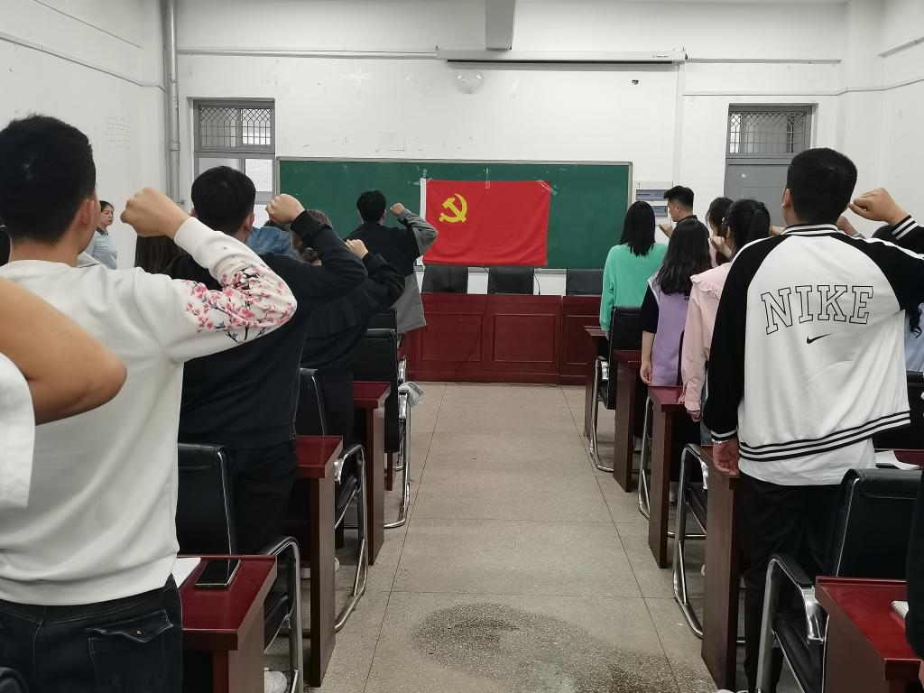 会后,新发展的党员面向党旗,右手握拳举过肩头,在领誓人季学强老师的逐句领读下,用慷慨激昂的语气,庄严向党旗宣誓,表达对党的忠诚、为共产主义事业奋斗终身的决心。