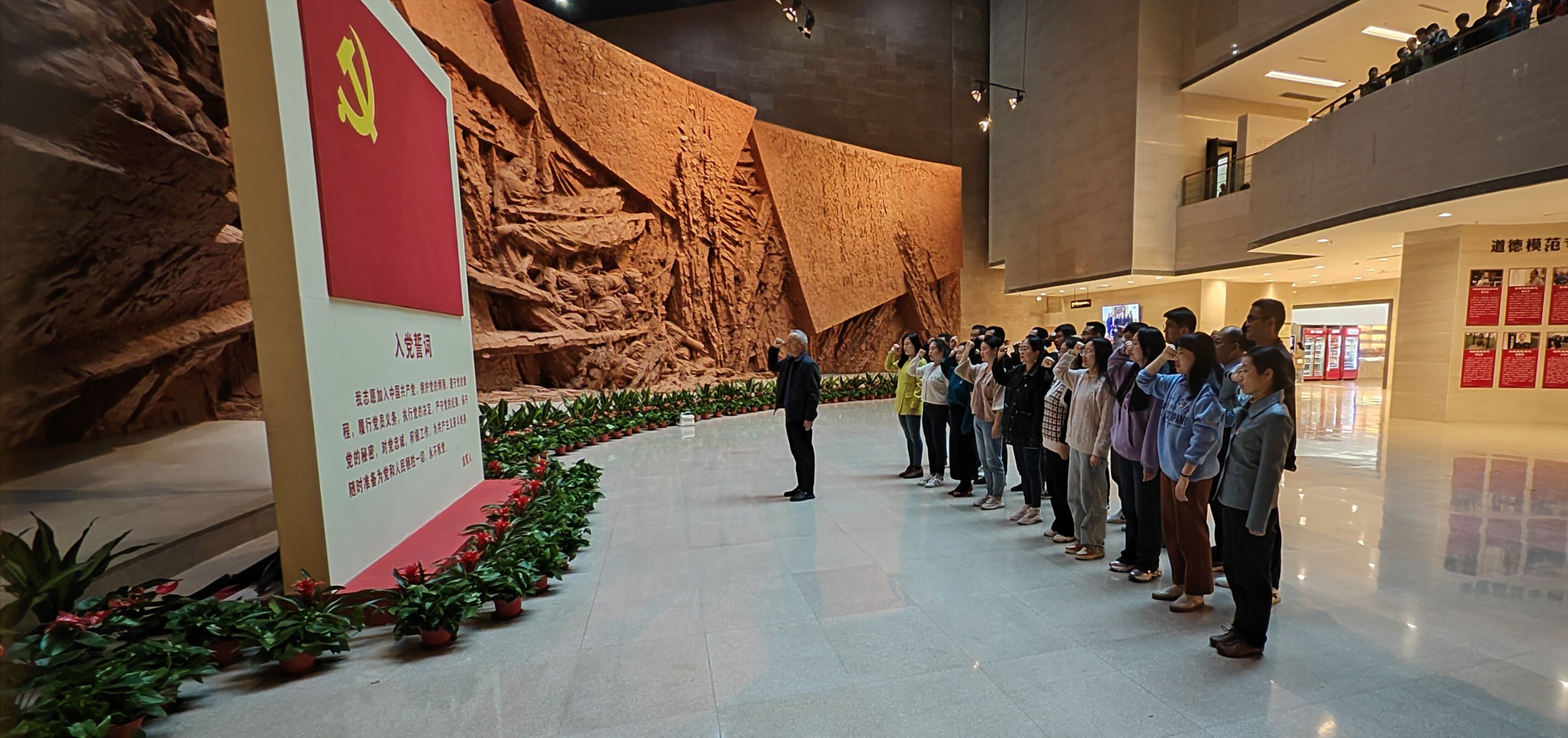 进入纪念馆后,全体党员在鲜红的党旗前举行了重温入党誓词活动。在汪春荣书记的带领下,面对鲜红的入党誓词,全体党员举起右手,庄严宣誓,重温入党誓词,在铿锵有力的宣誓声中表达了党员们为共产主义事业奋斗终身的决心和信念。随后参观了渡江战役纪念馆,馆内展厅以“百万雄师过大江”为主线,分为“战前形势”“战役准备”“突破江防”“战役胜利”“人民支前”“英烈业绩”等六部分。在馆内讲解员的讲解下,党员们全面地了解了渡江战役的光辉历程。通过2500余件历史照片、文物、油画、雕塑等影像和文物资料,生动地再现了70多年前人民解放军横渡长江的战斗历程,让党员们身临其境般感受到当年革命先烈不怕牺牲、英勇斗争的革命激情,感受伟大的渡江战役精神,感悟爱国情怀。