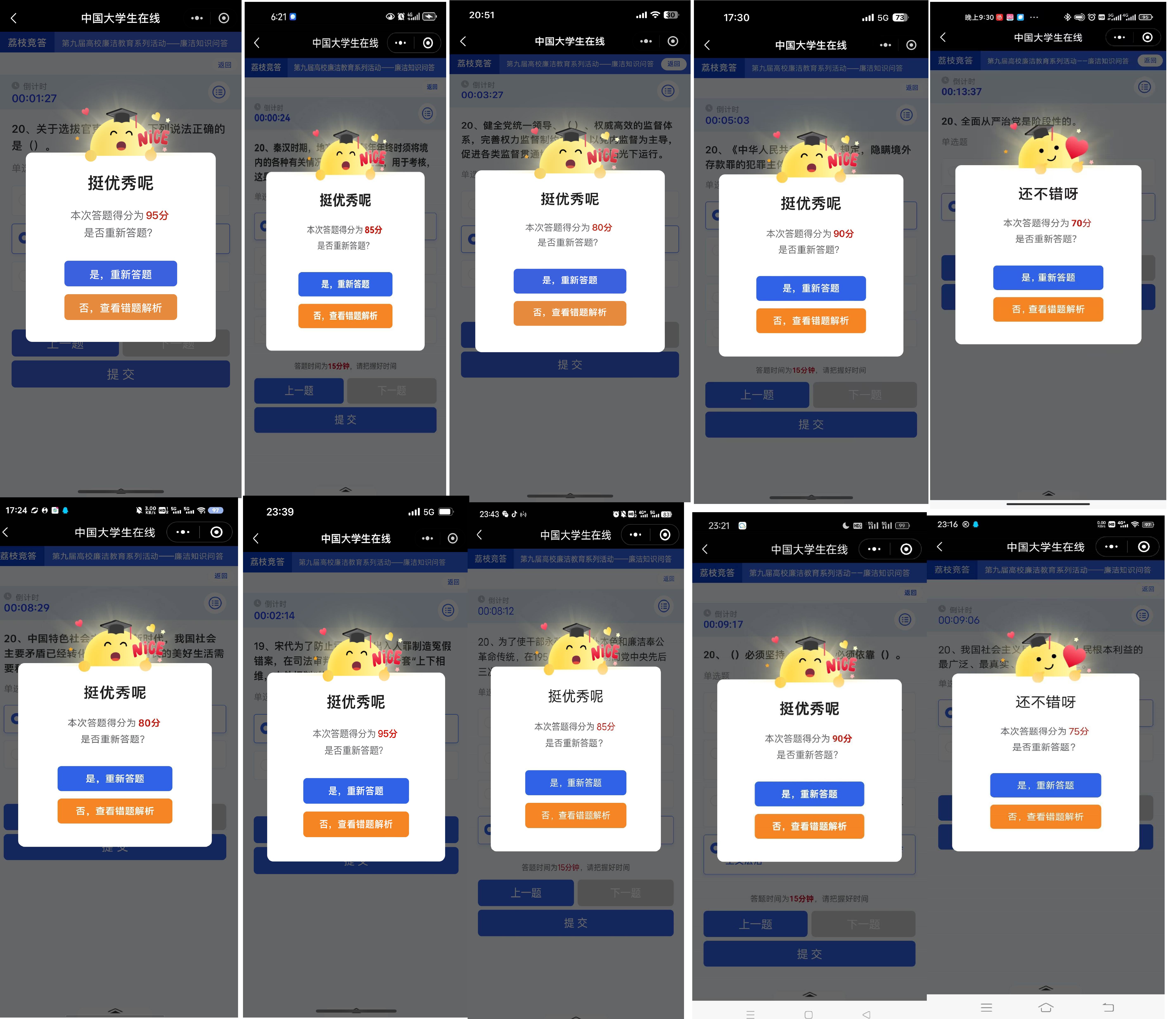 本次活动借助“微言教育”、“中国大学生在线”微信公众号平台,自6月3日至6月7日,面向全院师生,每人从题库随机分配20道题,满分100分,共计900余人参加线上答题。师生们纷纷表示,这次活动以答题这样新颖的方式开展,不仅增强了活动趣味性和自身积极性,在答题中了解到了自己对于廉洁文化知识的疏漏之处,让自己的廉洁文化知识体系更加完善,同时也让全院师生进一步学习了习近平总书记对加强新时代廉洁文化建设的重要指示精神,提升对廉洁文化建设重要性的认识,使大家深刻认识到全面从严治党对保持党的先进性和纯洁性的重要意义。