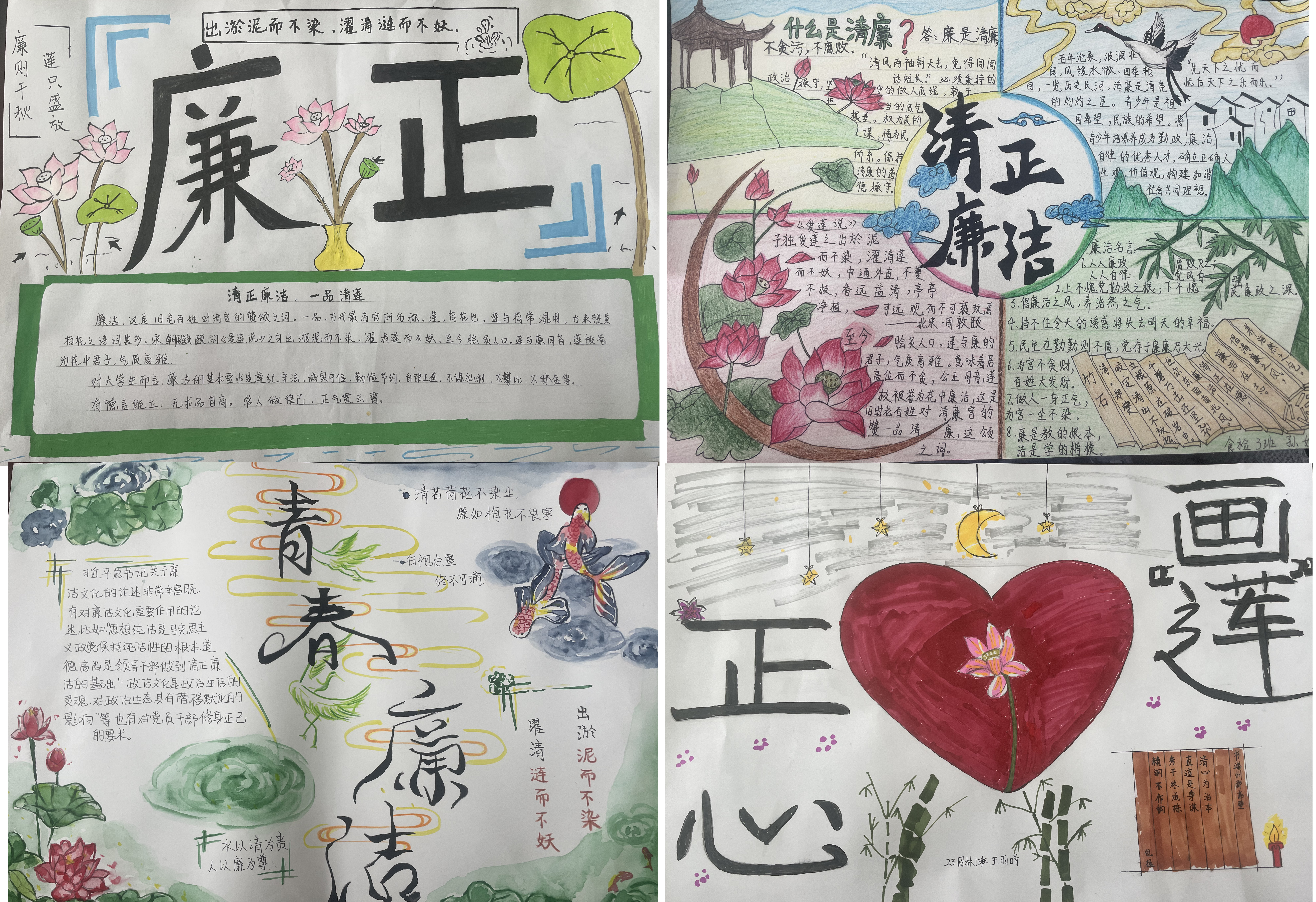 6月3日至6月7日,91精品一区举办了以“画廉正心”为主题的手抄报设计大赛。比赛期间,同学们充分发挥自身想象力与创造力,结合专业所长,精心绘制出一幅幅主题鲜明、内容丰富的手抄报作品。他们以莲花、青竹、祥云、清澈的流水等文化符号为取材,通过多种元素结合的形式,制作出了各种图文并茂的宣传海报或手抄报,描绘了心中的廉洁形象,展现了他们的艺术才情,更诠释了他们对作风建设与纪律防线的深刻领悟。本次大赛共征集到手抄报作品17份,这些作品主题突出、设计精巧。后经严格评审,本次大赛共有2名学生获得本次大赛一等奖,4名学生获二等奖,6名学生获三等奖,5名学生获优秀奖。本次手抄报设计大赛,不仅增强了同学们的创新意识和动手能力,还进一步深化了学生对纪律建设的理解与认识,营造出了浓厚的新时代廉洁校园文化氛围。