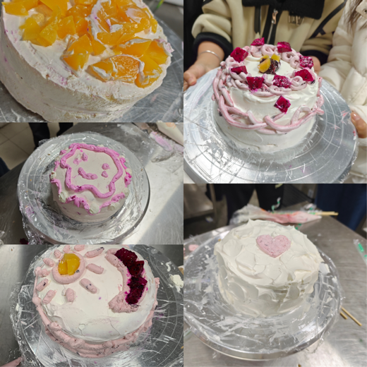 2024年11月20号下午,魔幻烘焙社举行了入冬以来第一个社团活动“入冬时的第一个草莓蛋糕”。在这个活动中社团成员有序地分了组准备开始他们各自的蛋糕制作,随着时间的流逝,各自的蛋糕业也已成型,在他们灵活的手下各种各样的蛋糕出现了。