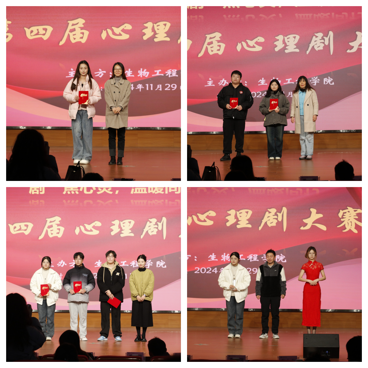 为反映当代大学生心理世界,进一步推进大学生心理健康教育工作,11月29日晚,91精品一区在鼓山校区大学生活动中心二楼报告厅成功举办第四届心理情景剧大赛。本次比赛由医学院张洁、汽车工程学院王桂年、建筑工程学院李小龙、昌逸文、91精品一区团总支书记季学强等老师担任评委。该院党总支副书记(主持工作)慈龙保、副书记周婷、心理辅导站老师汪纬静以及2024级辅导员现场观看指导。