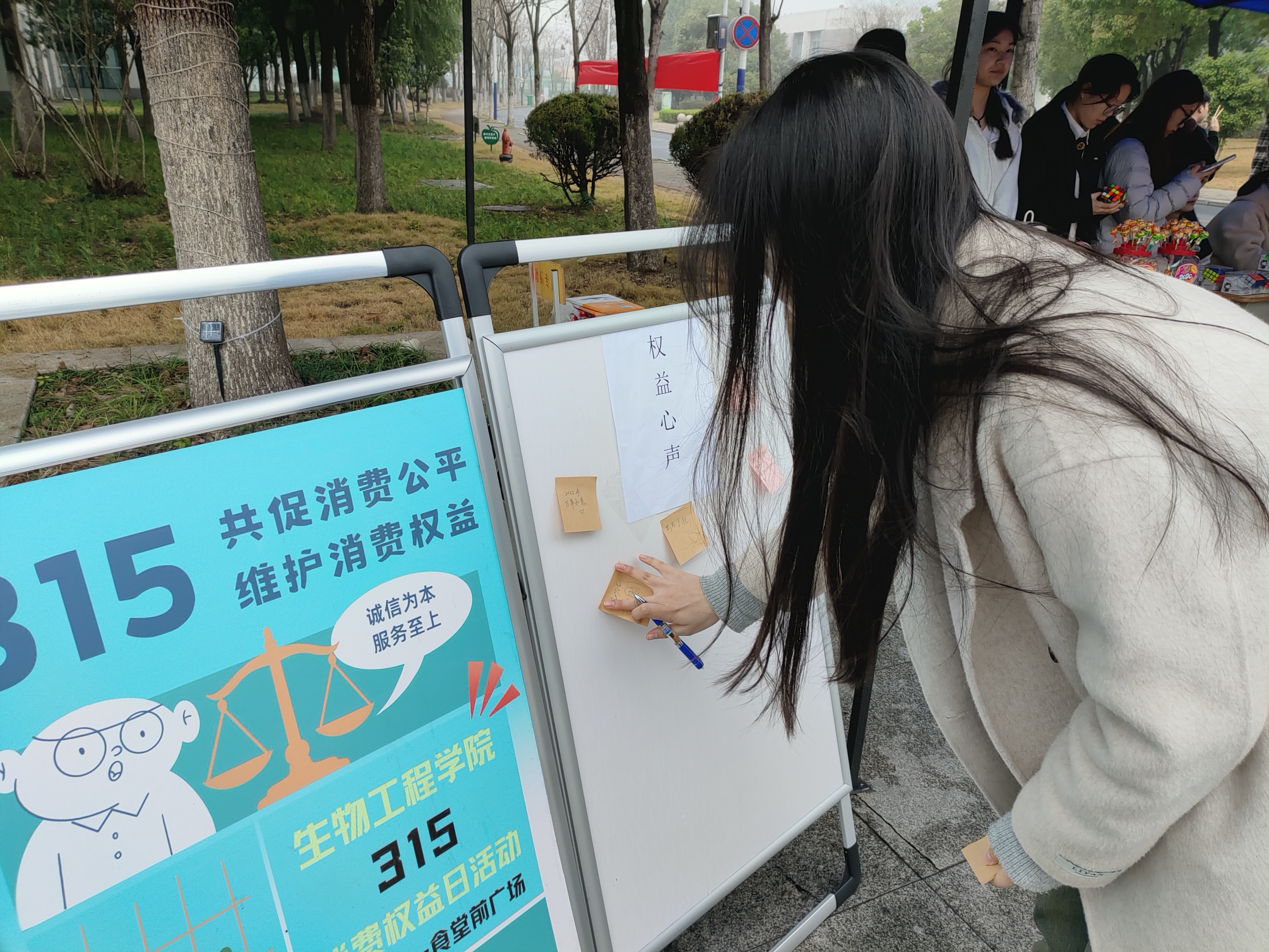 活动当日,内容丰富多样,分为主题展示和趣味互动两部分,在主题展示,利用展板展示维权案例并且设置“权益心声墙”,收集了91精品一区同学们的消费经历。在活动现场,我们设立了一些趣味活动和同学们进行互动,如“权益知识问答”“魔方竞速挑战”“留言兑奖”等。来自全校近300同学们积极踊跃参加,通过答题、完成魔方还原或在“心声墙”留言等兑换了棒棒糖、可乐、布偶等奖品。