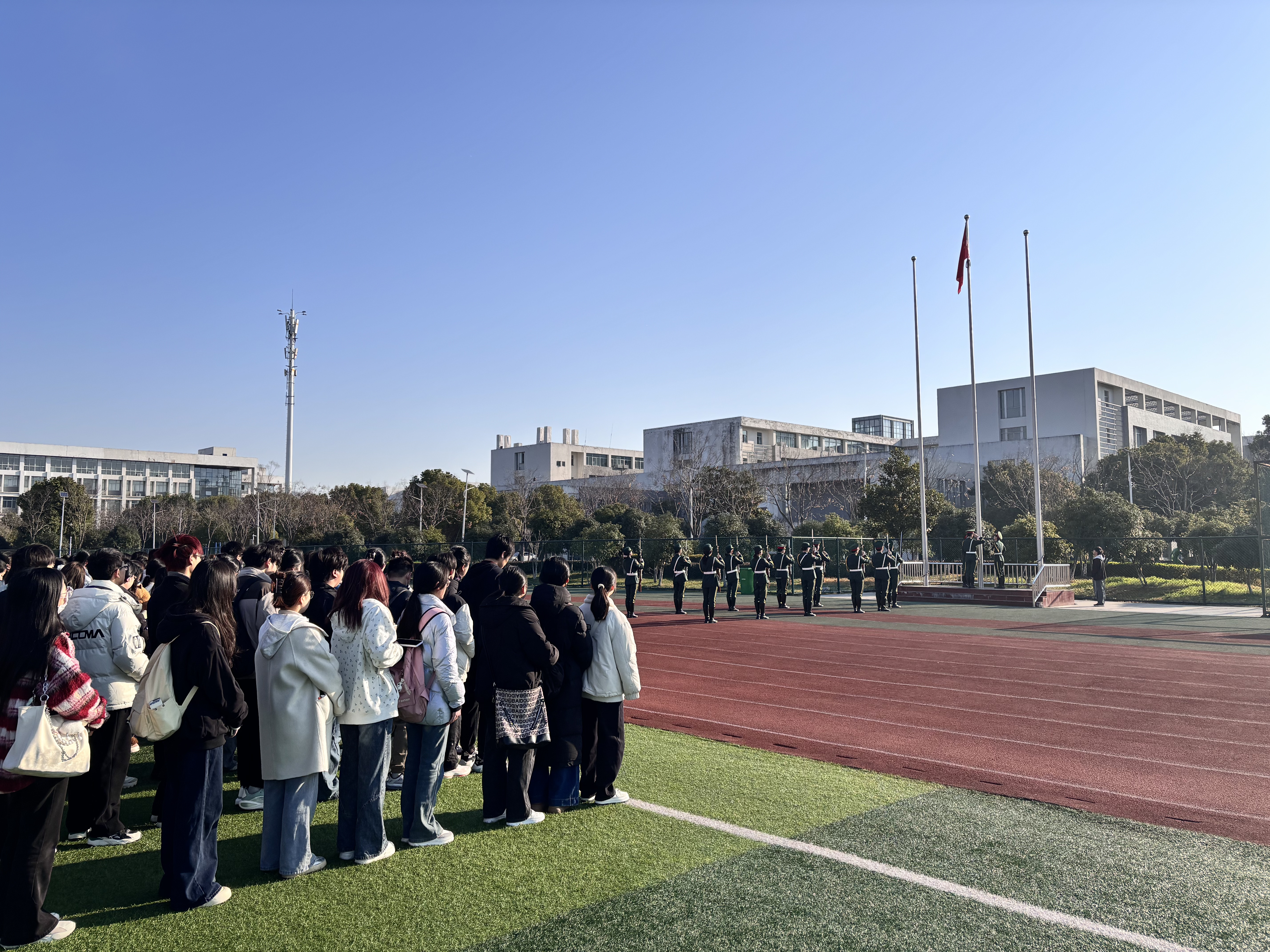 升旗仪式伊始,现场气氛庄严肃穆。八点整,国旗护卫队成员迈着整齐有力的步伐,步入仪式现场。随着国歌奏响,五星红旗徐徐升起,全体师生面向国旗行注目礼,表达对祖国的无限热爱和崇高敬意。