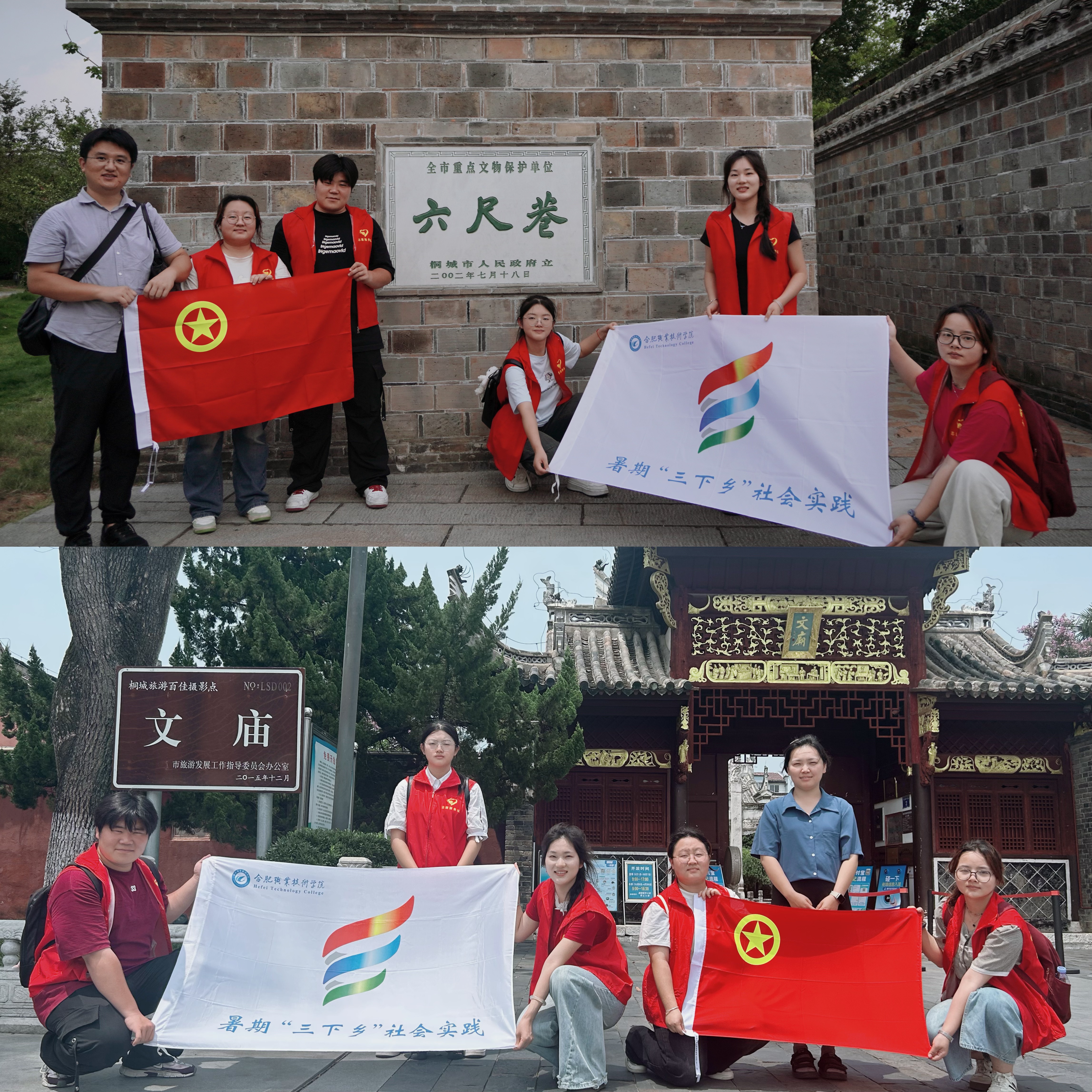 实践团队踏入家喻户晓的六尺巷,这方窄巷从不是简单的历史符号,而是桐城人刻在骨里的处世哲学,是“文都”气韵最生动的注脚。伫立巷中,传统美德的微光已点亮文化探寻的征程。从古巷转身,我们站在了桐城文庙的红漆门前。飞檐翘角挑着蓝天,斗拱交错间透着儒家“中和”的气韵,仿佛还能听见明清学子的读书声从殿内传出。转至文化博物馆,玻璃柜里的古籍、木雕、民俗器物,正默默讲述“桐城派”如何统领文坛三百年,讲述张英、方苞们如何用笔墨书写家国。从古文义法到民间技艺,从先贤风骨到寻常烟火,我们在展柜前与千年文明对话——原来这片土地的厚重,从不是博物馆里的陈列,而是流淌在当下的生命力。