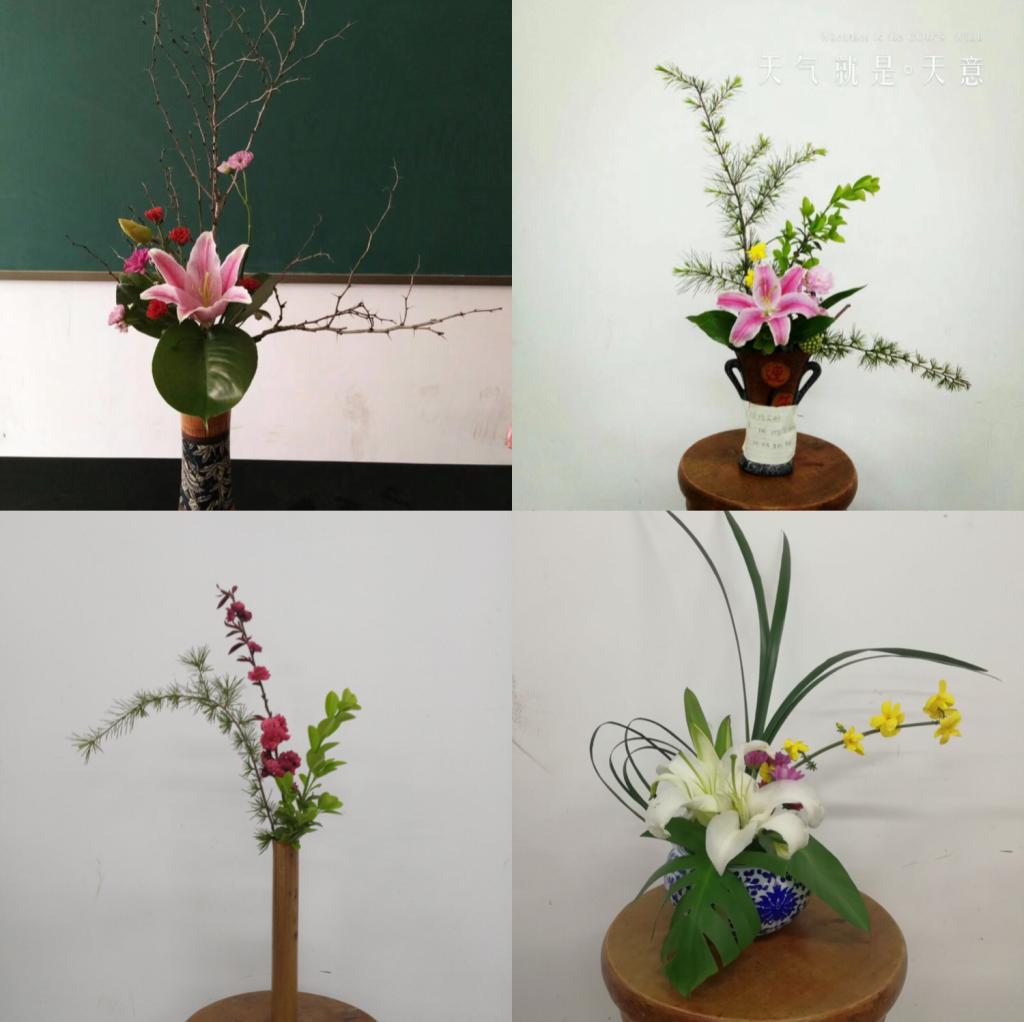“愿做一枝花,无语悦人间。”插花是最简单的美学修行,通过本次活动,同学们对花卉又有了进一步的认知,并能够将自己内心的情感充分融汇到所创作的作品中。不论是春花枯枝,还是青瓷瓦罐,只要心中有对生活的热爱,有对生命的体悟,放眼望去,一草一木皆可入画,一荣一枯皆是意境。