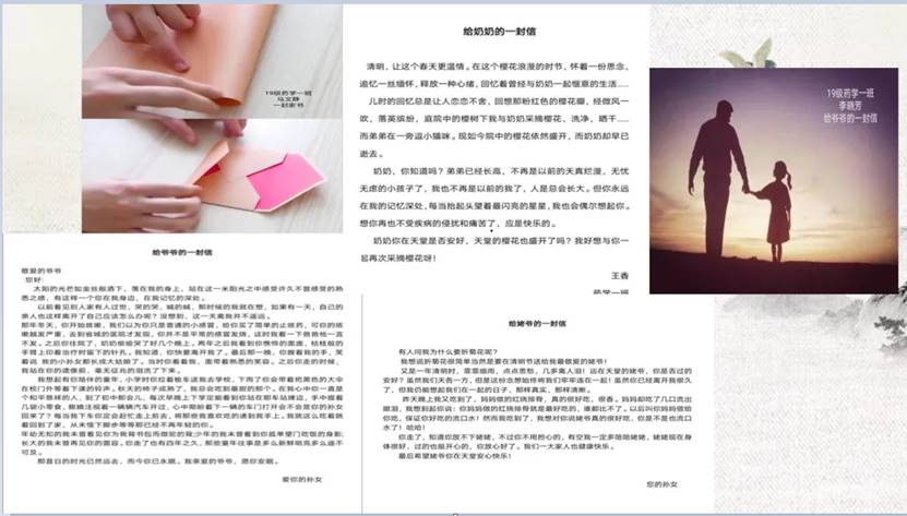 世人都说人死了之后,会以另外一种方式陪伴在我们身边——在我们心里,在我们的思念中。一封封亲手制作的家书,更是凝结了千言万绪。让我们一起来来欣赏同学们所写家书,感受字里行间的温情。