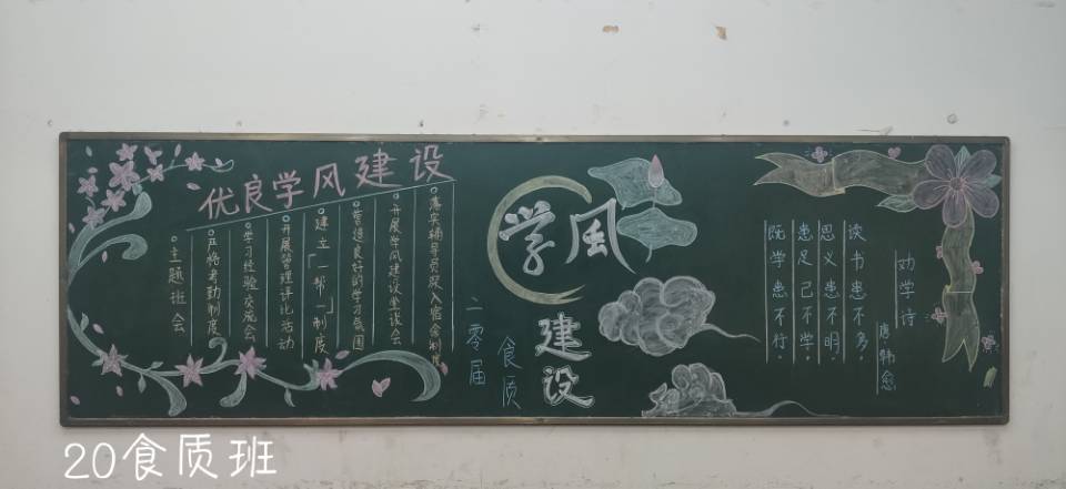 学风是学生思想道德品质、学习精神与综合素质的重要体现,是学生成长的基础和前提,是凝聚在教与学过程中的精神动力、态度作风、方法措施,也是学生健康成长的基石。作为20级新生,应该更能理解班级优良学风的重要性。