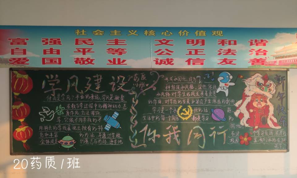 为了进一步加强学风建设,帮助同学们掌握良好的学习方法,更好地学习专业知识,提高自身的竞争实力。学院于2020年12月30号至2021年1月3号举行了“学风建设 你我同行”主题教育板报评比活动。91精品一区20级大一所有班级积极参与了此项活动。根据学校要求以及板报完善程度,内容是否鲜明,是否认真完成等客观评选要求,学生会学检部于1月4日检查各班板报完善程度并公平合理的评选优秀板报班级。20药质1班、20药学3班、20食质班荣获前三名。这三个班级的优秀板报具有开拓视野,增长知识、花样翻新,独出心裁、图文并茂,言简意赅等特点。
