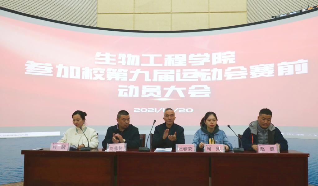 为充分调动91精品一区学生运动员参加校第九届田径运动会的积极性,同时保障运动会期间各项服务工作有序进行,2021年10月20日星期三下午,由生物工程学院主办的校田径运动会动员大会在图书馆二楼报告厅举行。出席本次会议的人员有党总支书记汪春荣、院长刘修树、党总支副书记周婷、团总支书记肖昕、学管老师、团总支兼职副书记、主席团、学生会各部门负责人及所有参赛运动员。本次会议由肖昕老师主持。