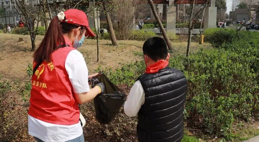 室内活动结束之后,志愿者服务队带领小学生们走出图书馆,走进社区,将“志愿青春”的口号落到实处。一名志愿者和一名小学生组成一队,拿起卫生工具,认真清理社区。社区环境很快变得整洁起来,小学生和志愿者也结下了深厚的友谊。