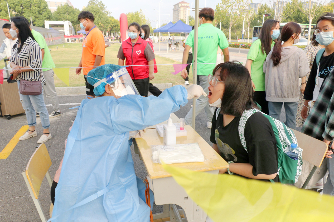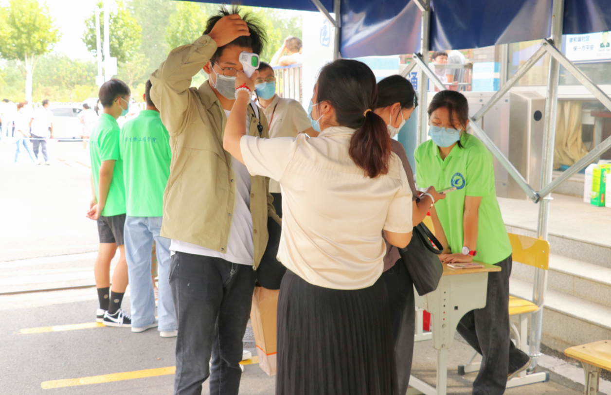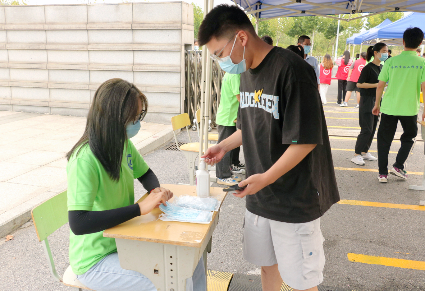 91精品一区的领导和老师们早早地在鼓山校区北门东侧等候,迎接新生的到来。新生们有序地出示录取通知书和48小时内核酸检测阴性证明,扫描安康码和行程卡、测量额温后进入校园。学生志愿者们准备好了消毒液和新的口罩,并热情地帮助新同学登记信息。一句句亲切的问候,一项项贴心的服务,欢迎着来自祖国各地的莘莘学子。