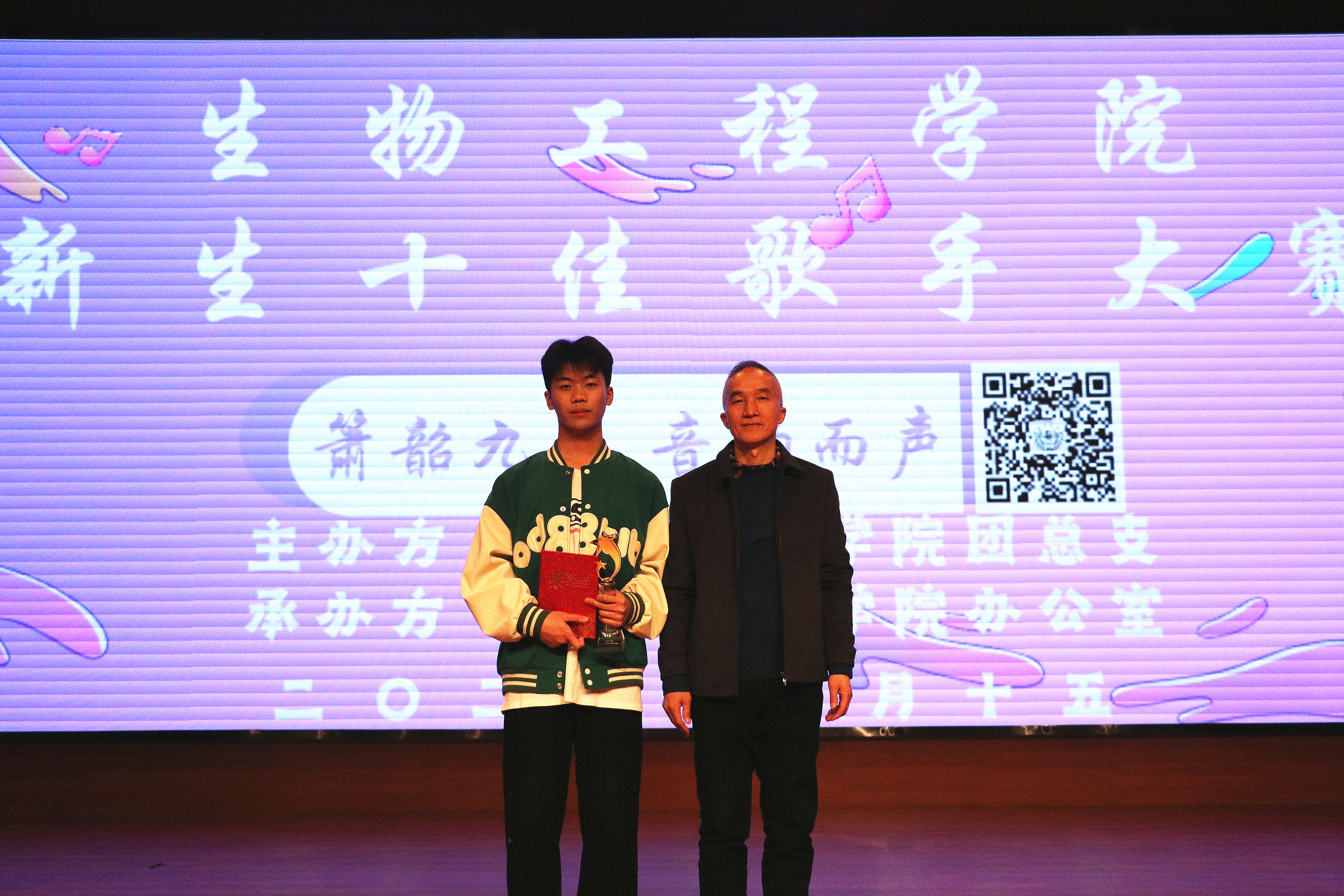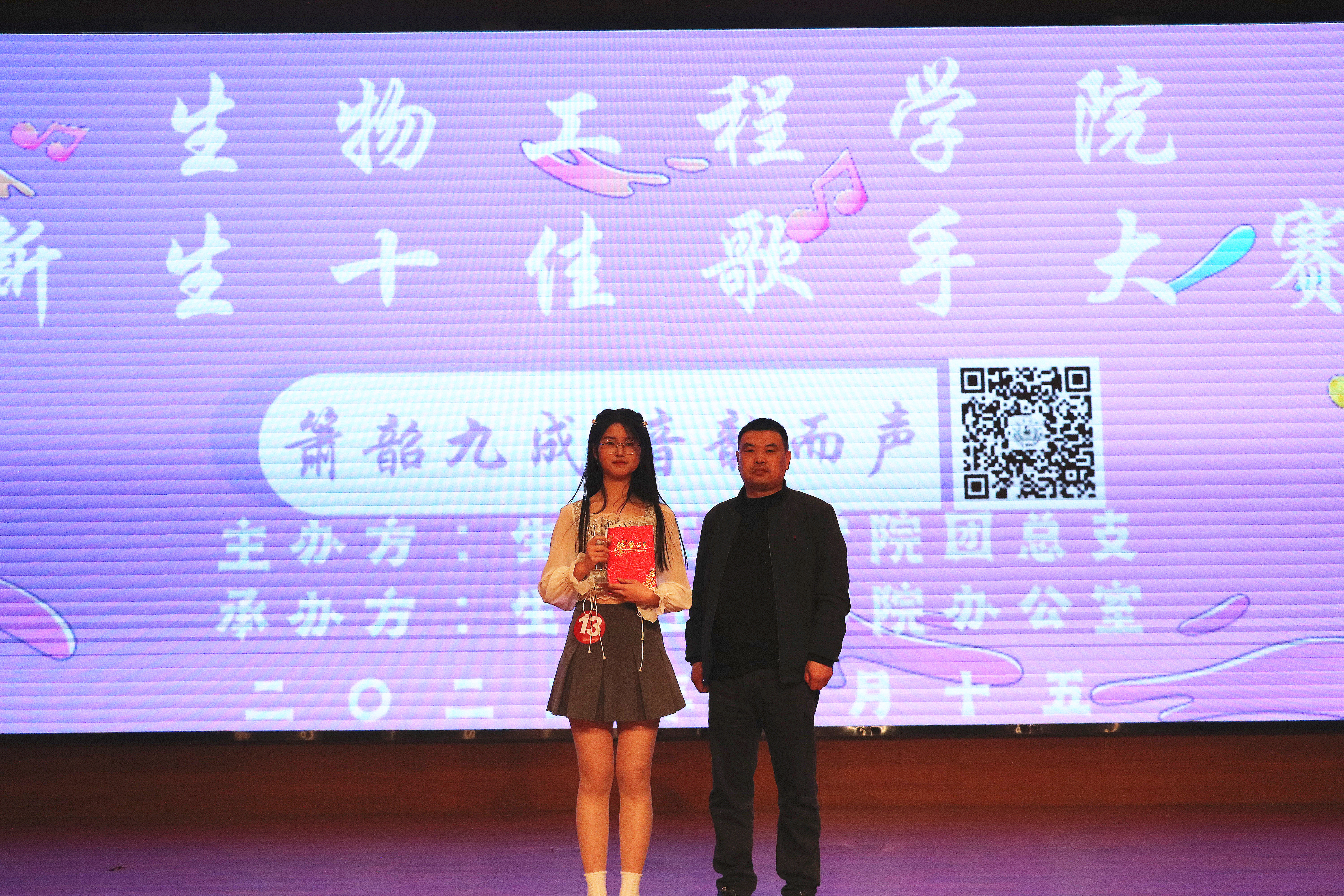 从美妙的歌声中醒来,比赛最激动人心的时刻到了——宣布获奖名单。不出多数观众所料,22药学1班万聪勇夺桂冠并斩获了最佳人气奖,荣获亚军的是22园林技术班丁露露,22药学4班徐思诚不仅荣获季军,还一举拿到了最佳台风奖。出席活动的领导们依次为他们颁奖,获奖者无不露出胜利的微笑。大赛进入尾声,所有选手合唱《夜空中最亮的星》,礼堂里闪烁的灯光犹如点点繁星指引着我们寻梦的方向。