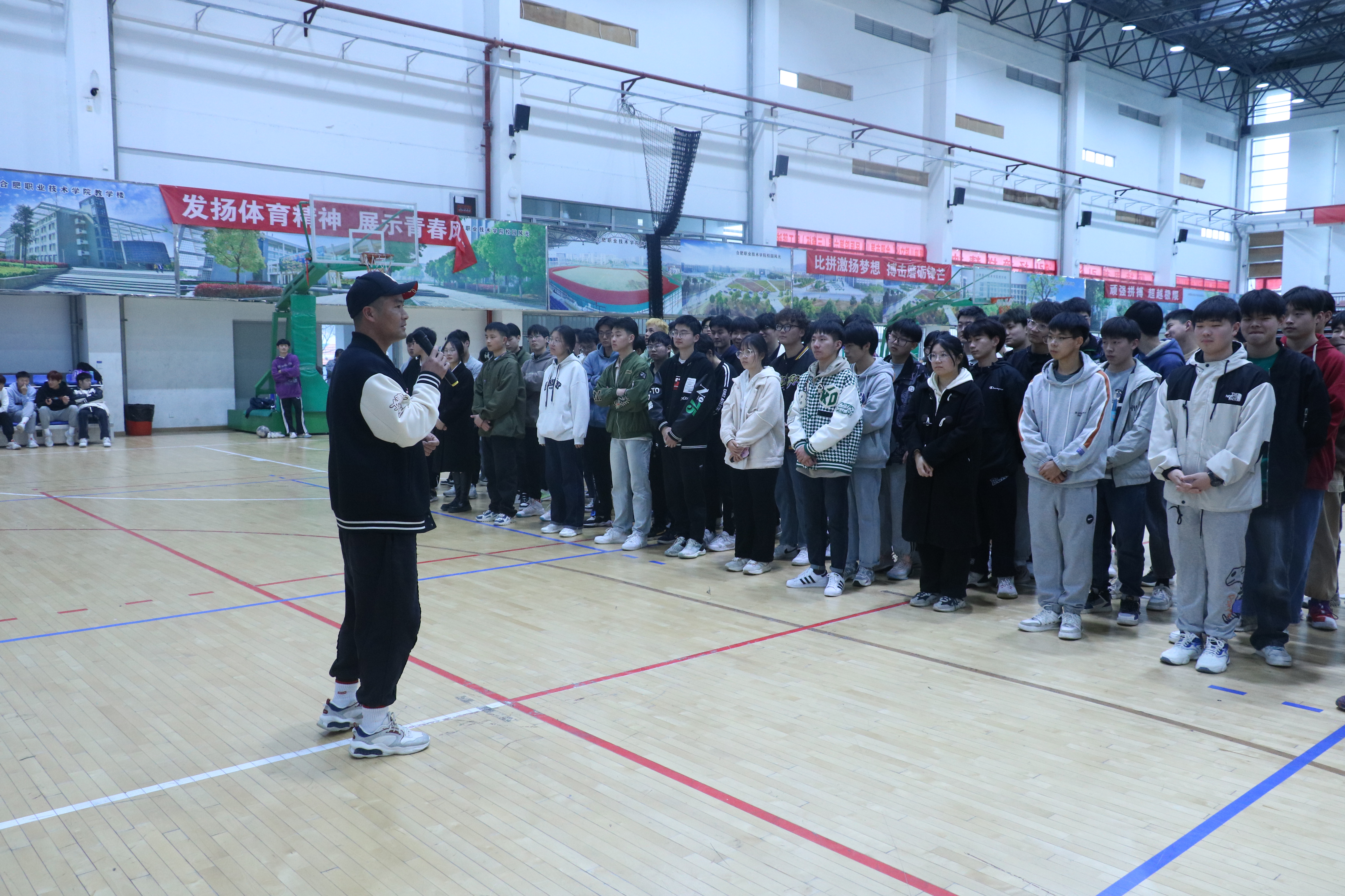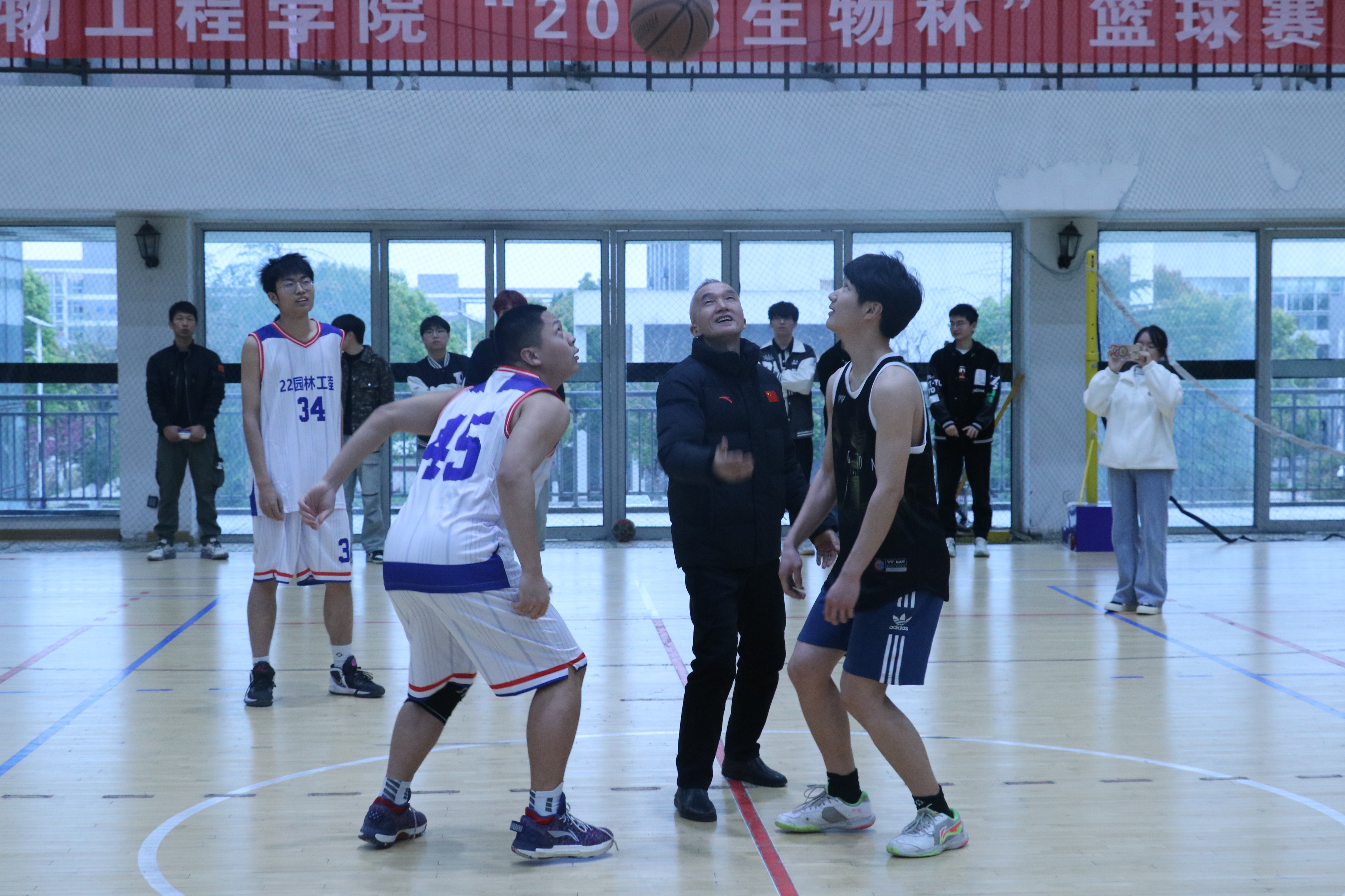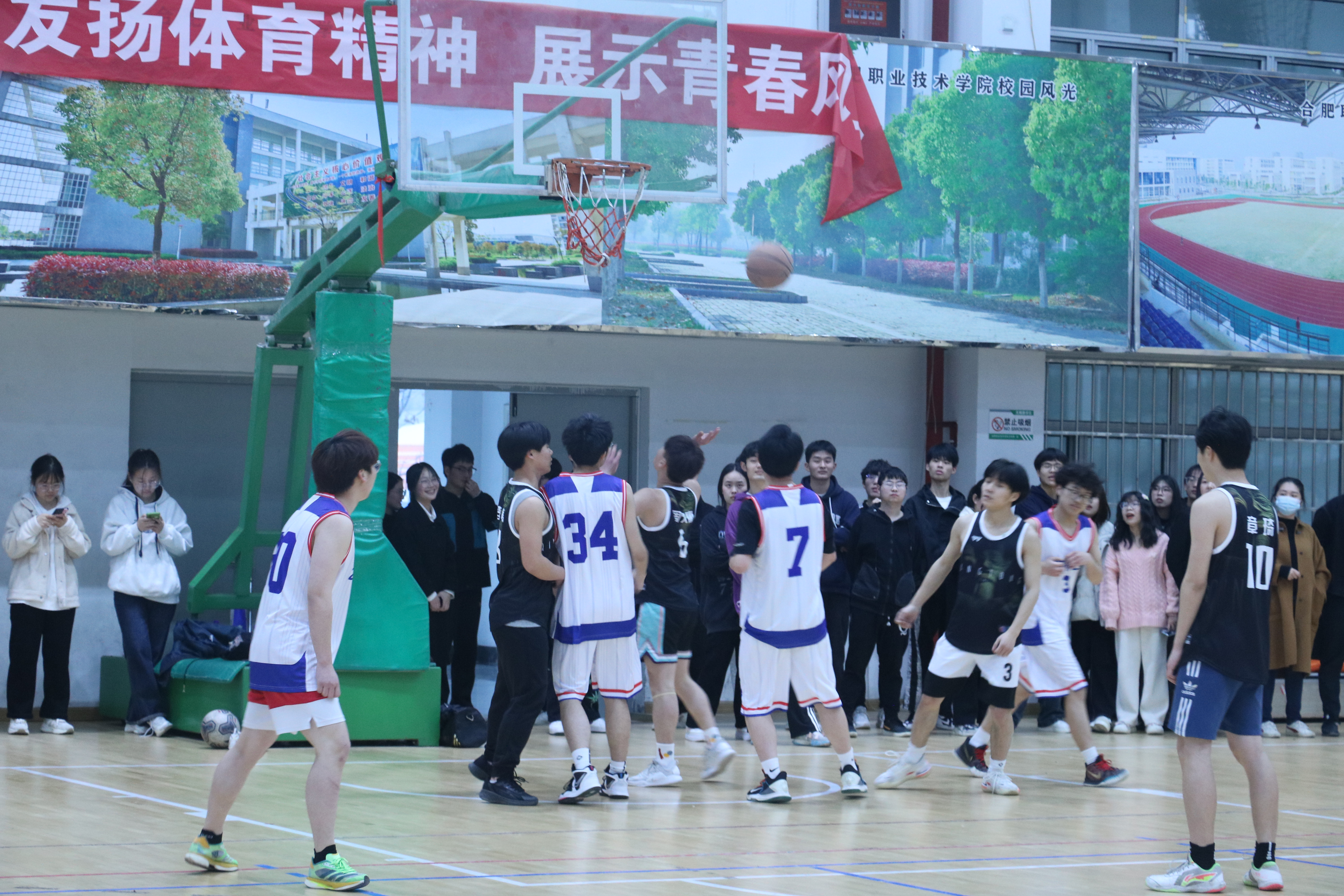 比赛开始前,91精品一区学生会各部门志愿者提前到达岗位,为比赛的后勤工作提供保障。开幕式由团总支肖昕老师主持,赵健老师对本次篮球赛做出相关要求和注意事项的总结,他指出,参赛队员要做好个人防护,赛前要热身,并坚持文明参赛增进友谊的原则。在同学们的翘首以盼中,党总支书记汪春荣在球场中央进行开球并宣布篮球赛正式开始。伴随着一阵阵热烈的掌声,比赛正式拉开了帷幕。一个个奔跑跳跃的身影,篮球在球员之间灵活的传递,投起的篮球碰撞篮板的声音和观赛同学们的高声喝彩相应和。参赛队员们在球场上挥洒汗水的同时也深刻体会到了团结共赢的意义,用努力绘就了积极向上、健康活力的青春风采。