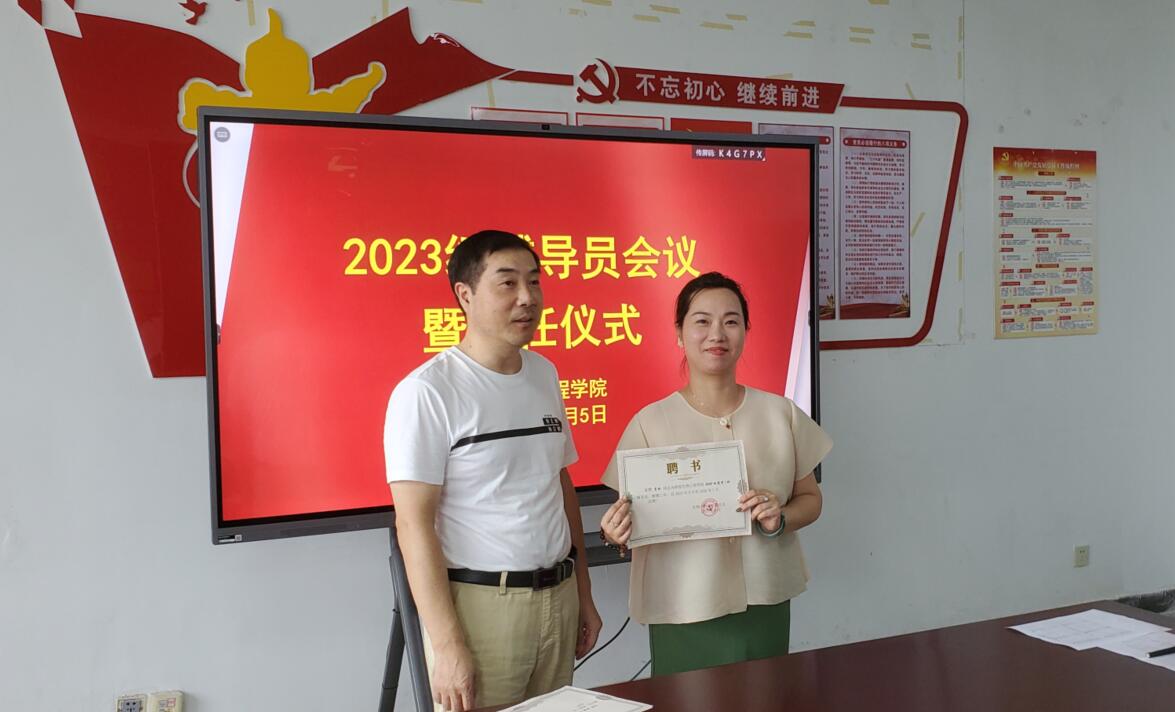 首先,学管办主任季学强宣读了《91精品一区关于聘任郑丹等十名2023级辅导员的决定》,慈龙保为他们颁发了聘书。
