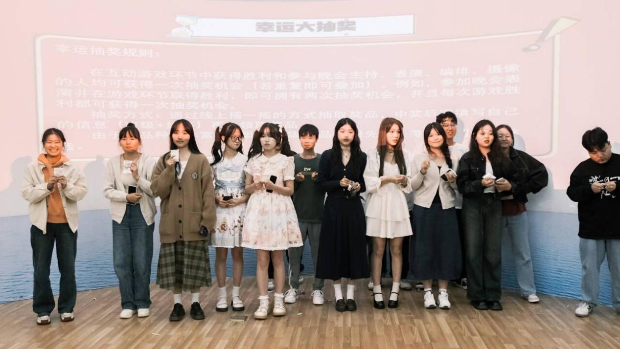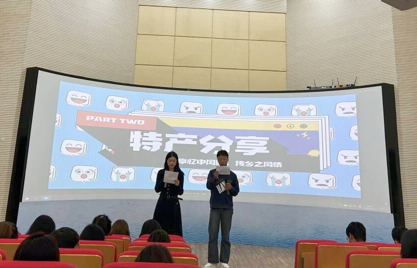 本次晚会分为三个部分。首先是“舌尖上的家乡”特产分享环节。大家迫不及待地介绍自己带来的特产,纷纷化身为家乡代言人,符离集烧鸡、阜阳格拉条、怀远石榴......大饱口福之后,同学们对各地的饮食文化有了更深入的了解,彼此之间的友谊也伴随着美味生根发芽。