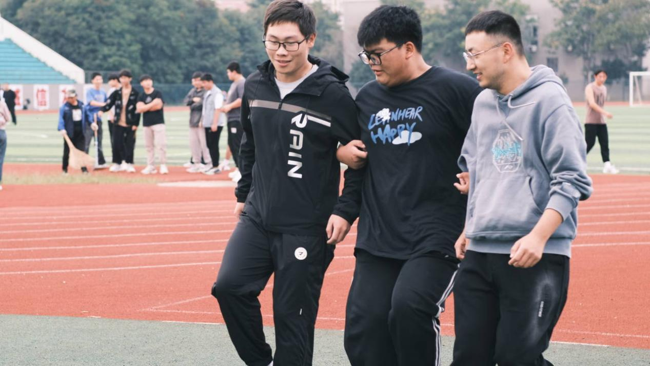 “数数几条腿”、“手忙脚乱”在田径场分别开展,手脚并用的他们看起来很滑稽,让围观者捧腹大笑。但在挑战的时候,团队成员目标一致,在“手忙脚乱”中提升了彼此的团队协作能力和沟通执行能力。