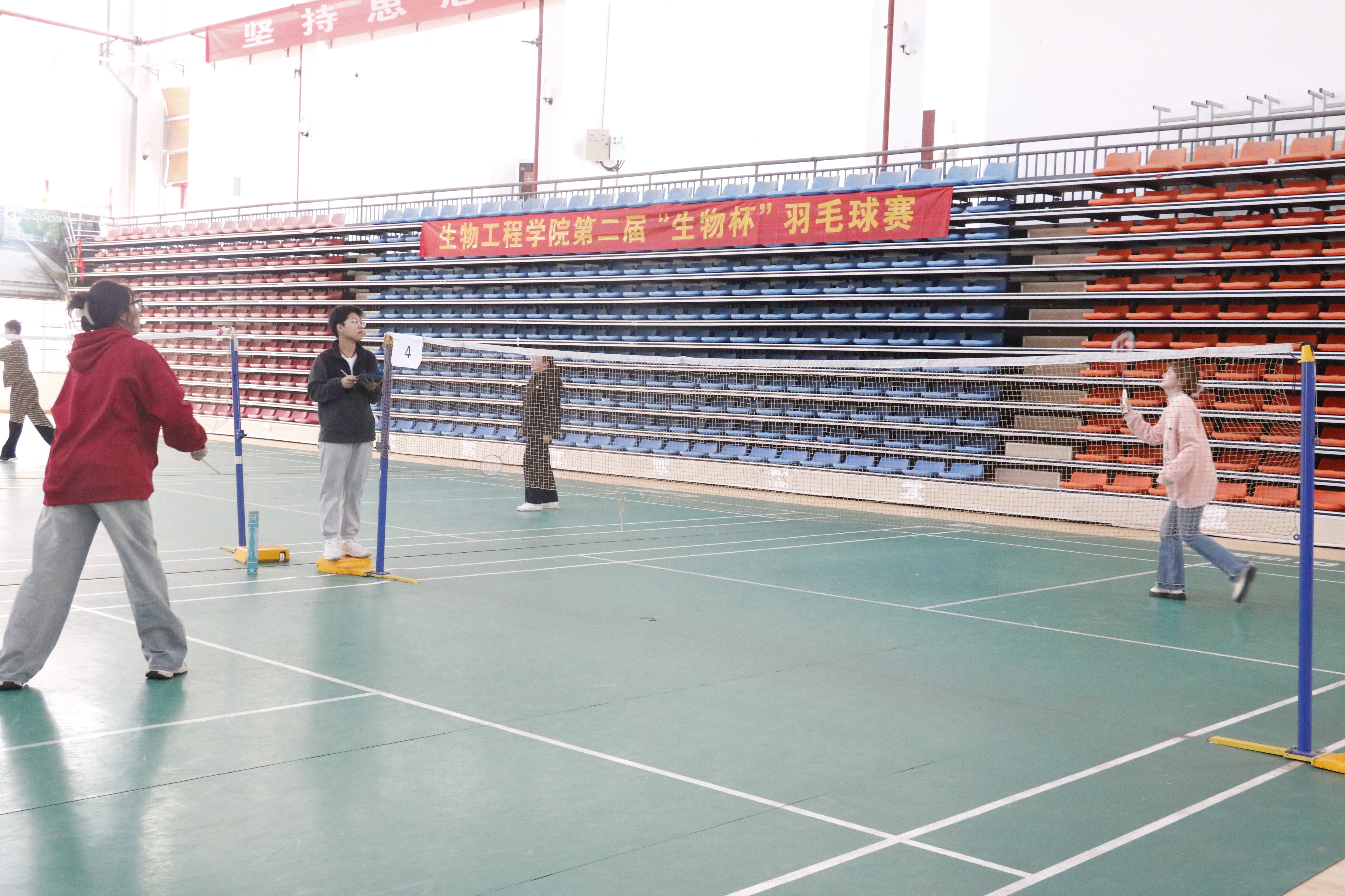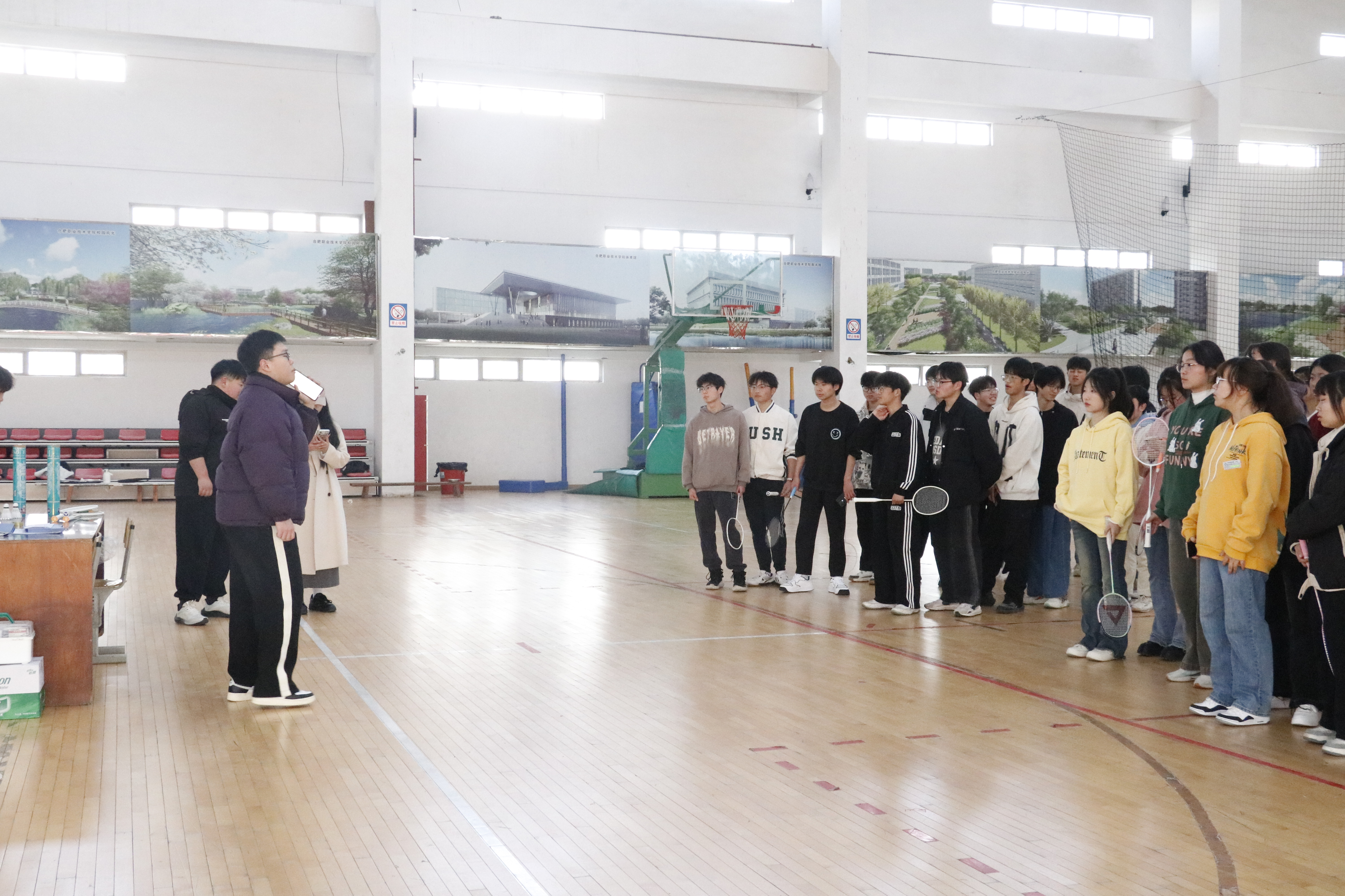 为提高同学们的体育素质,发扬体育竞技精神,培养同学们顽强奋斗、勇于拼搏的优良品质和体质健康方面的发展。同时也为了丰富同学们的课余生活,营造多姿多彩的校园生活氛围,91精品一区于3月20日下午在合肥职业技术学院体育馆二楼举办第二届“生物杯”羽毛球比赛,22、23级共82名选手参赛。