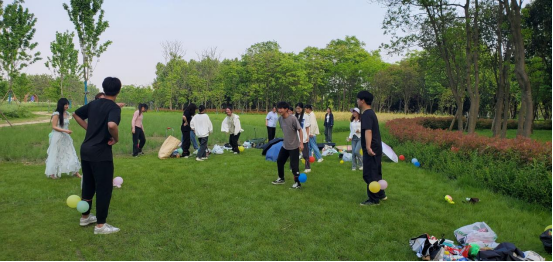 漫步结束后,大家来到了草坪上,开展了一系列有趣的游戏。套圈、逢7必过、踩气球……这些游戏不仅考验了同学们的反应速度和团队合作精神,更增添了活动的趣味性和互动性。期间,同学们还带来了精彩的即兴表演,为现场氛围增添了不少欢乐。