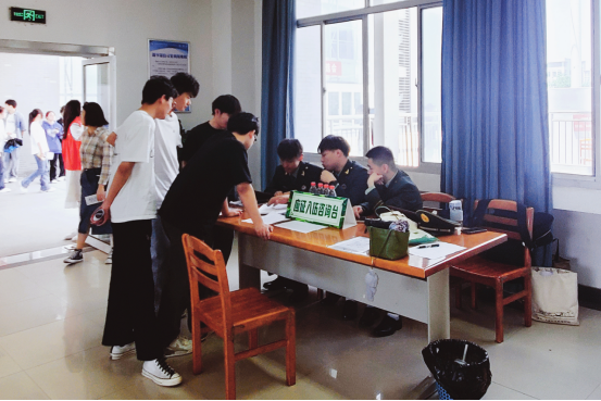 在活动现场,设置了征兵宣传咨询台,邀请了在校退役大学生担任讲解员,他们身穿军装,以亲身经历向同学们介绍军营生活,分享训练经历,展示军人风采。学生志愿者们身着统一服装,热情地向过往的同学发放宣传单,耐心解答他们关于征兵政策的疑问。