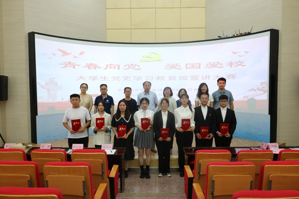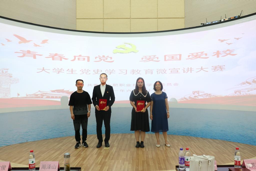 为庆祝中国共产党成立100周年,推动党史学习教育深入青年、深入基层团支部、深入人心,号召广大共青团员共学党史,传承红色基因、革命薪火,合肥职业技术学院在鼓山校区于6月24日下午4点20分在图书馆二楼报告厅举办“青春向党,爱国爱校”微团课宣讲大赛决赛。
