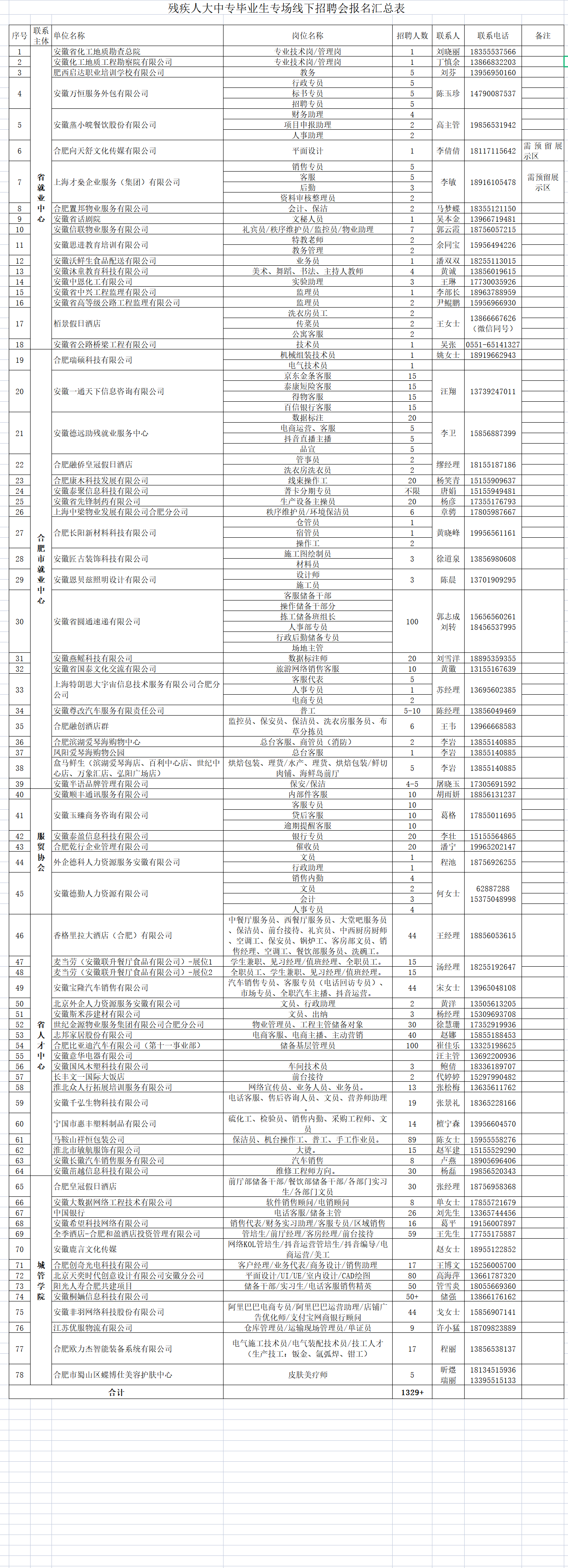 残疾人大中专毕业生专场线下招聘会报名汇总表