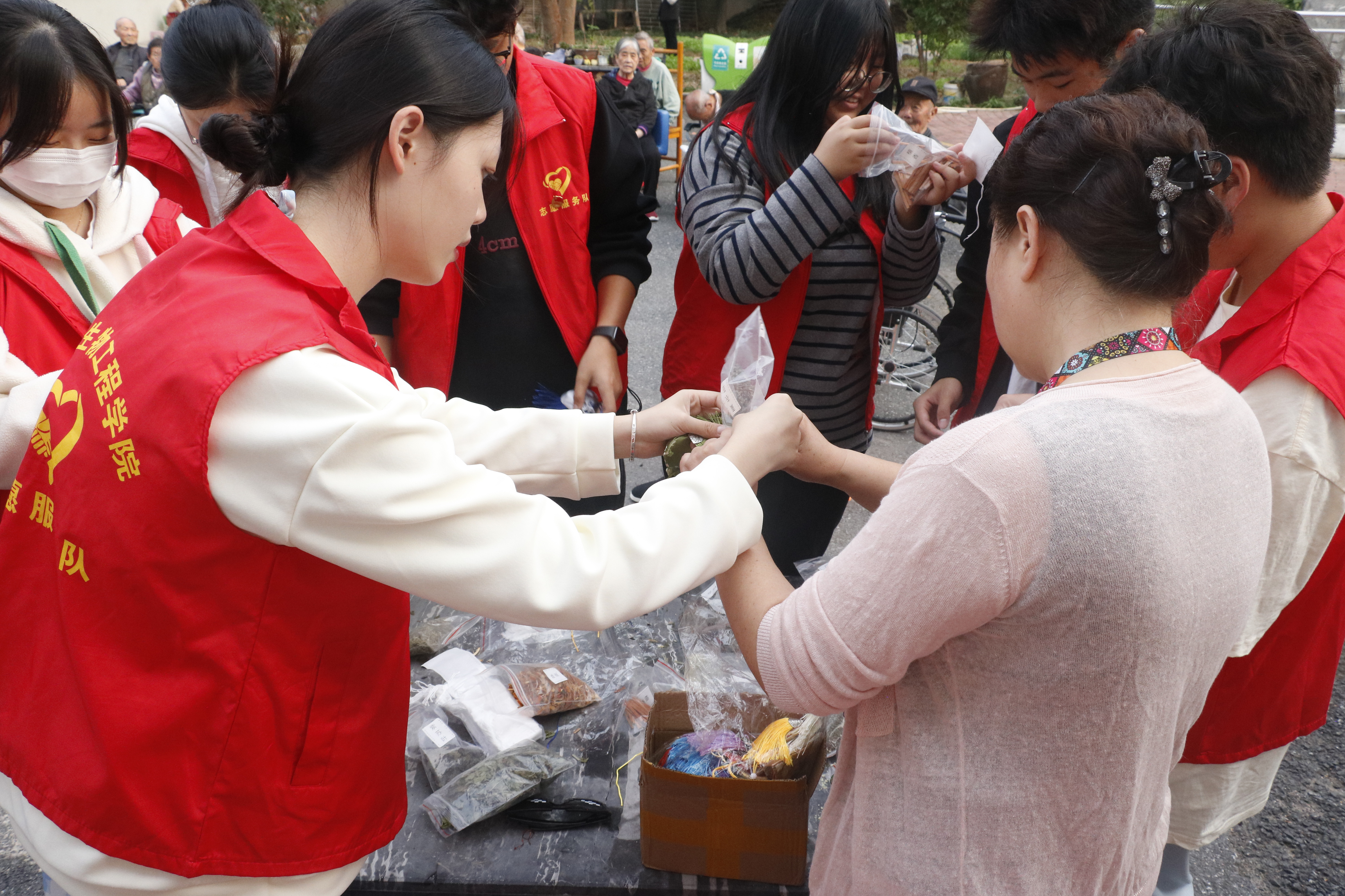 首先展开的是一场温馨的中药香囊制作活动,在志愿者的引导下,志愿者带领老人们一起制作传统的中药香囊,大家认真地上丝线、填药材,塞棉花......大家在与传统文化的亲密接触中,更深地体会传统文化魅力。活动现场,多数老人都是第一次亲手制作香囊,大家相互讨论交流心得,现场非常热闹,大家相互配合DIY出一个个充满温情的福气香囊。随着一个个香囊的制作完成,志愿者对老人们吉祥平安的祝福也在其中被传递。随后,学生志愿者夏鹏同学为老人们献上了一首《我和我的祖国》,悠扬的歌声在活动场回荡,老人们有的轻轻打着节拍,有的跟着哼唱,脸上洋溢着幸福的笑容。最后,志愿者们分成几个小组投入到清洁行动中来,有的仔细清除着庭院的杂草,有的拿着抹布,认真擦拭老人们房间、桌椅,还有的为老人们整理床铺,把被子叠得整整齐齐。在清扫的过程中,志愿者们还不时与老人们亲切交谈,询问他们的身体状况,老人们的脸上洋溢着幸福的笑容。